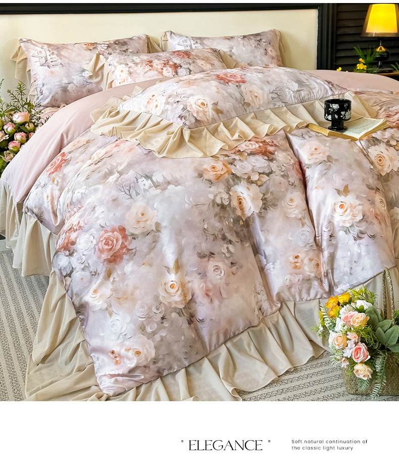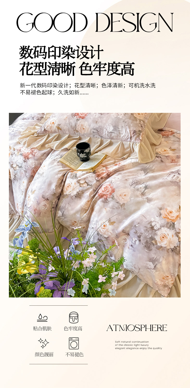 (总)首选家纺 2025新款法式花边玉锦缎数码印花四件套,法式-春光绿意,法式-淡雅年华,法式-荷花,法式-莫奈花园,法式-情人花朵
