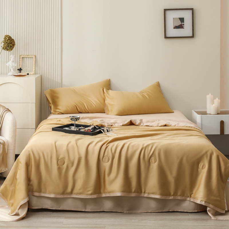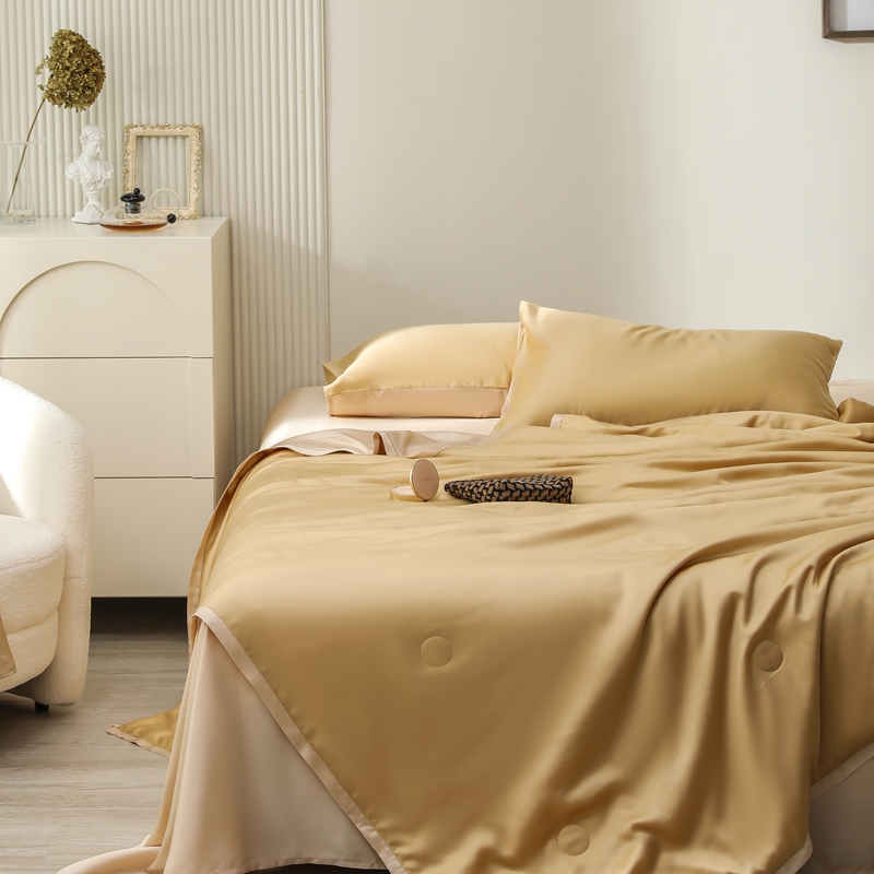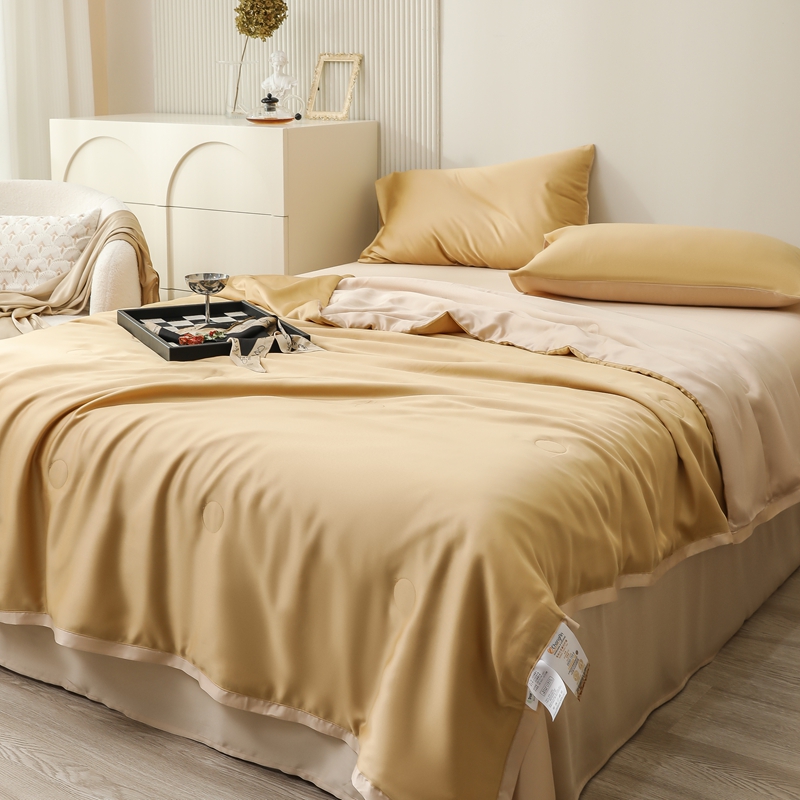 当前位置: 91家纺网 > 商品网购 > 床品套件 > 四件套 > 夏被四件套 > 眷恋家纺 2025春夏新款双拼纯色60天丝夏被四件套 芝士黄-沙茶色