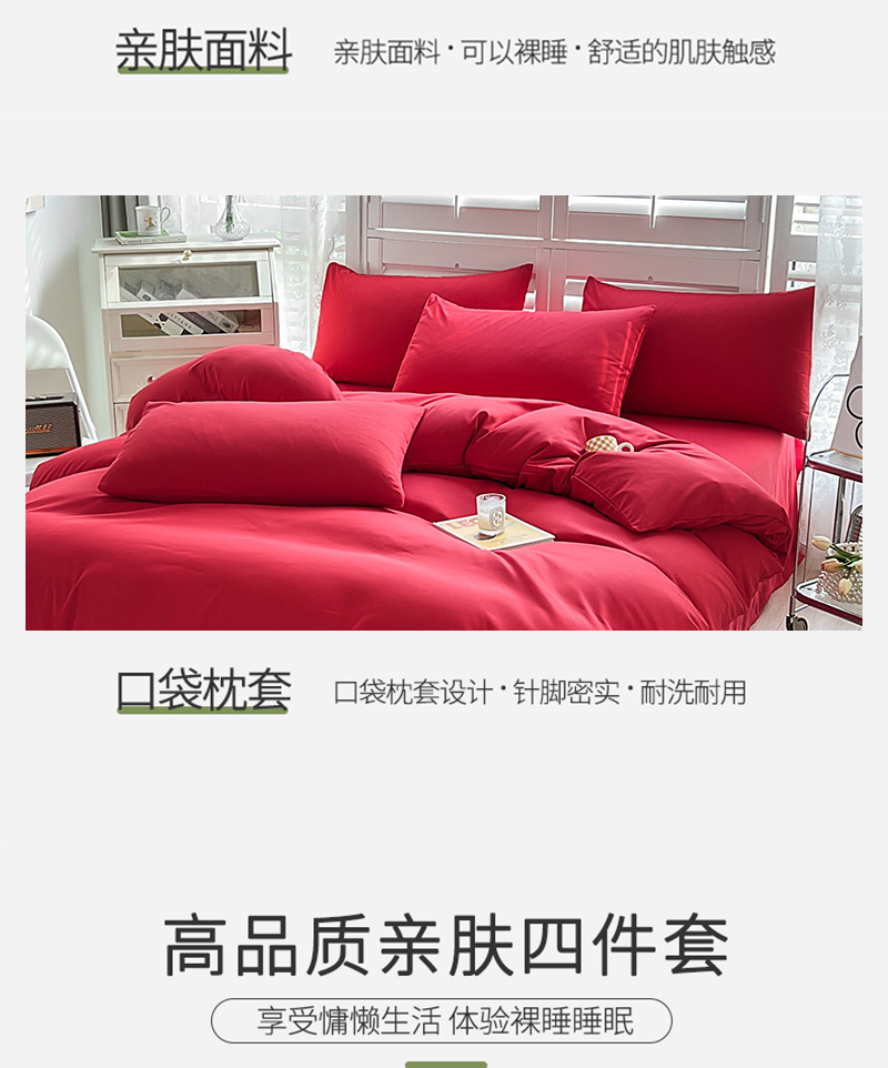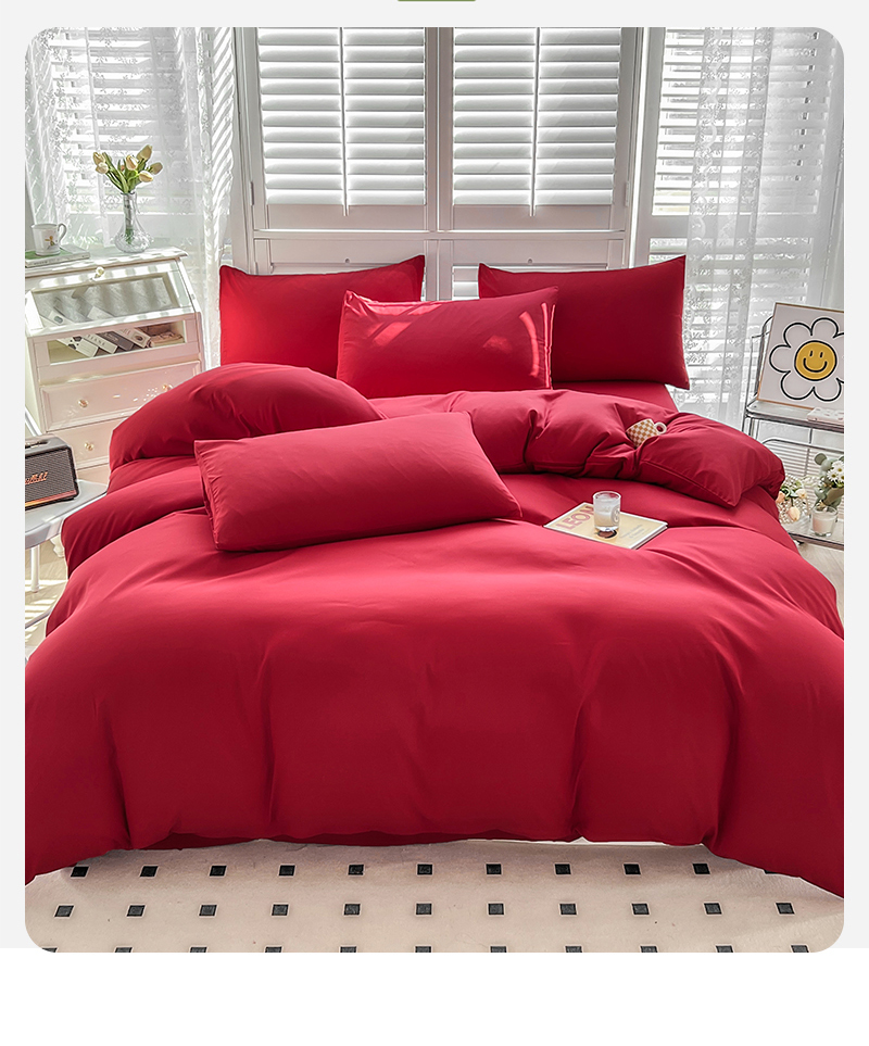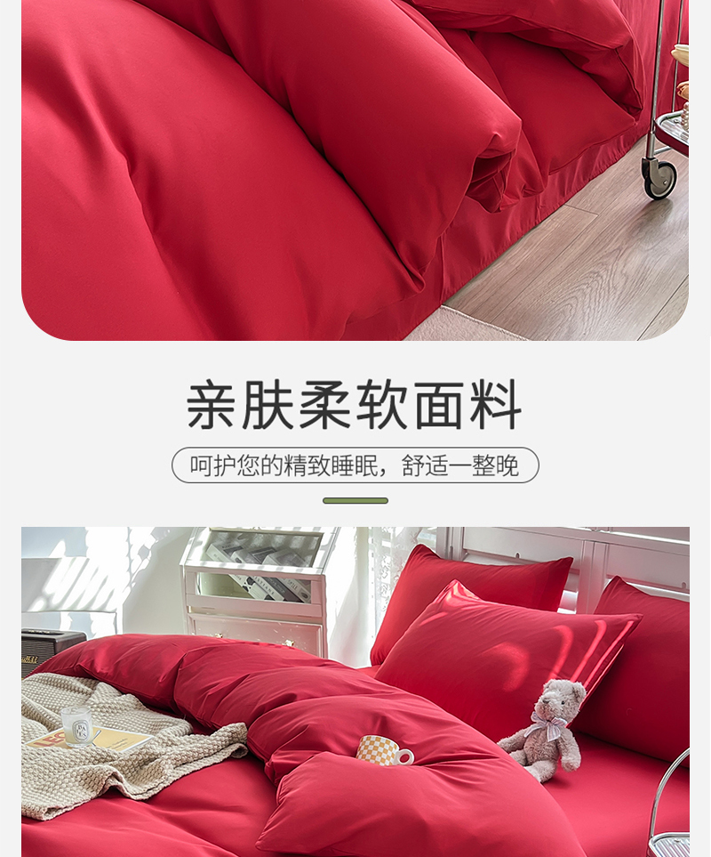 当前位置: 91家纺网 > 商品网购 > 床品套件 > 四件套 > 其它四件套 > 啊雅家居 2025新款学生宿舍双拼磨毛被套床单床笠单品三件套四件套 红色