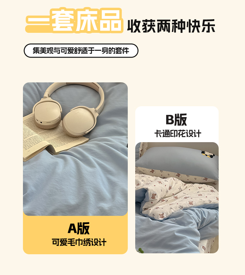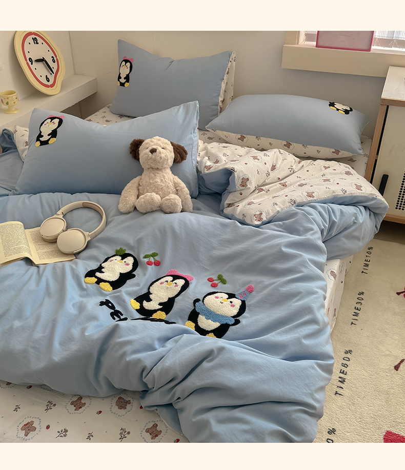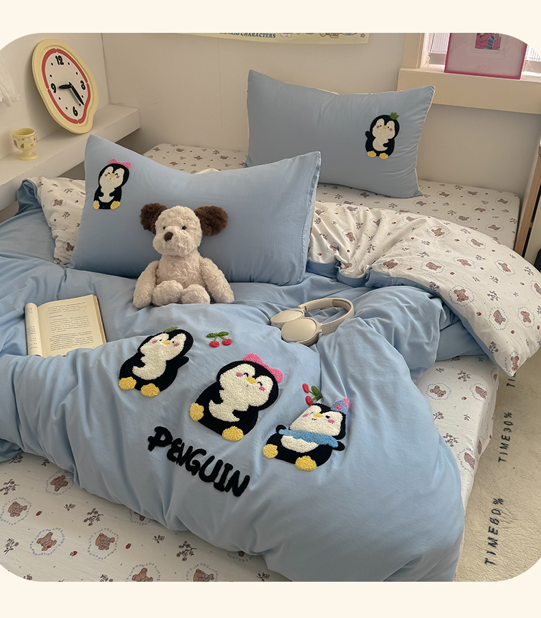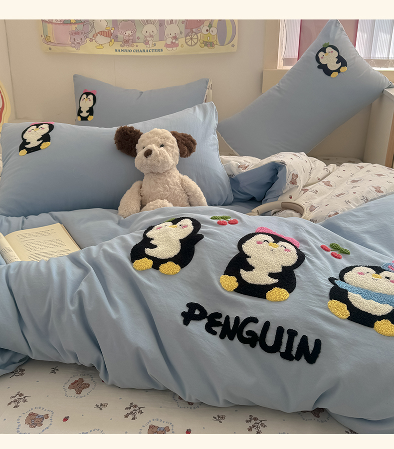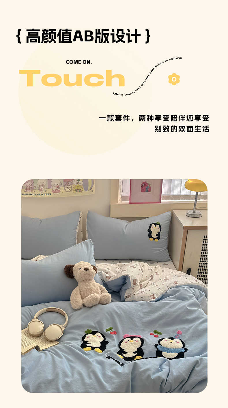 当前位置: 91家纺网 > 商品网购 > 床品套件 > 四件套 > 水洗棉四件套 > 沃朴家居 2025春夏新款亲肤水洗棉毛巾绣四件套 企鹅派对