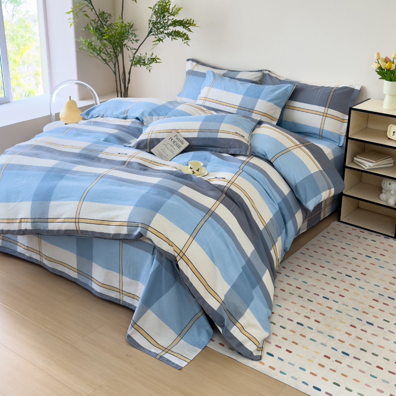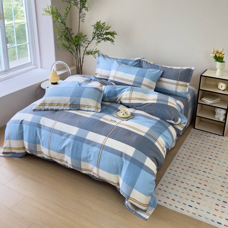 当前位置: 91家纺网 > 商品网购 > 床品套件 > 四件套 > 全棉普通四件套 > 新款12868全棉学生宿舍三件套卡通纯棉四件套 方格城市