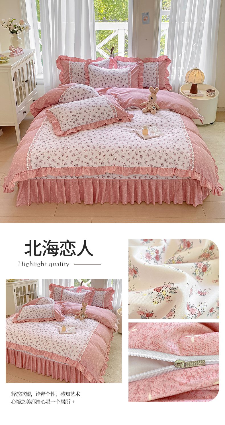 商品名称:皇谱家纺 2025新款A类有氧木棉床裙四件套 北海恋人
