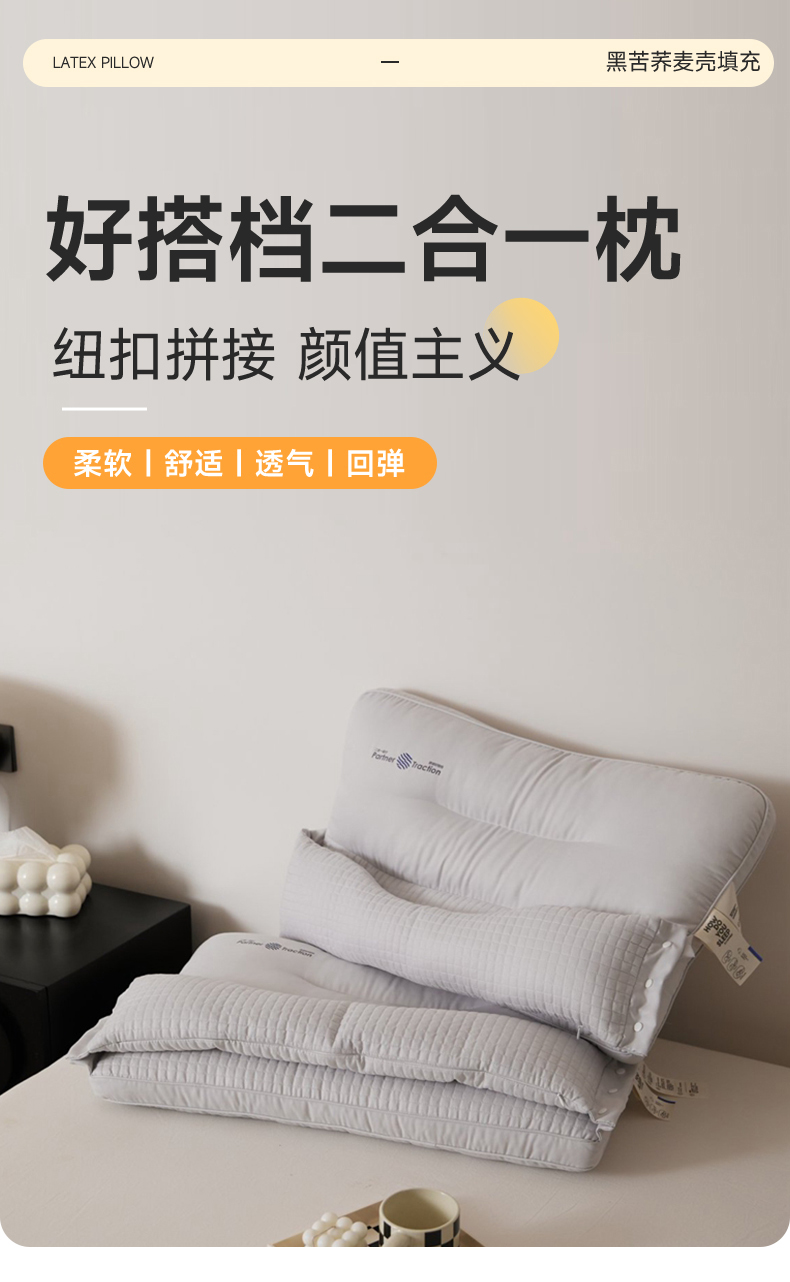 当前位置: 91家纺网 > 商品网购 > 枕头/枕芯/保健枕/颈椎枕 > 普通枕芯 > 境月枕芯坊 2025新款好搭档二合一枕系列枕头枕芯 灰 48*74cm/只