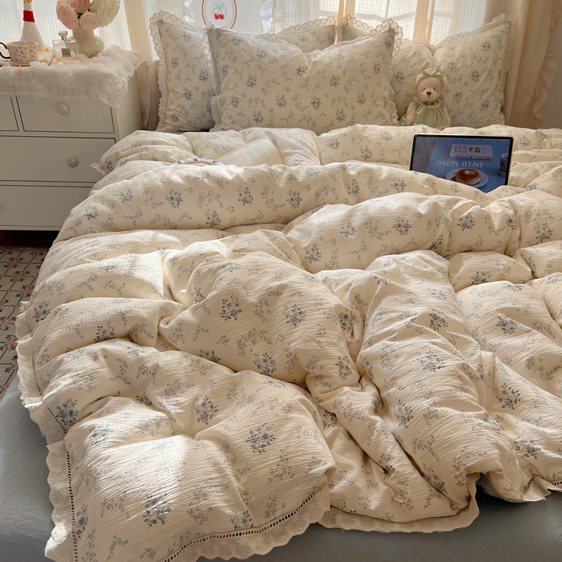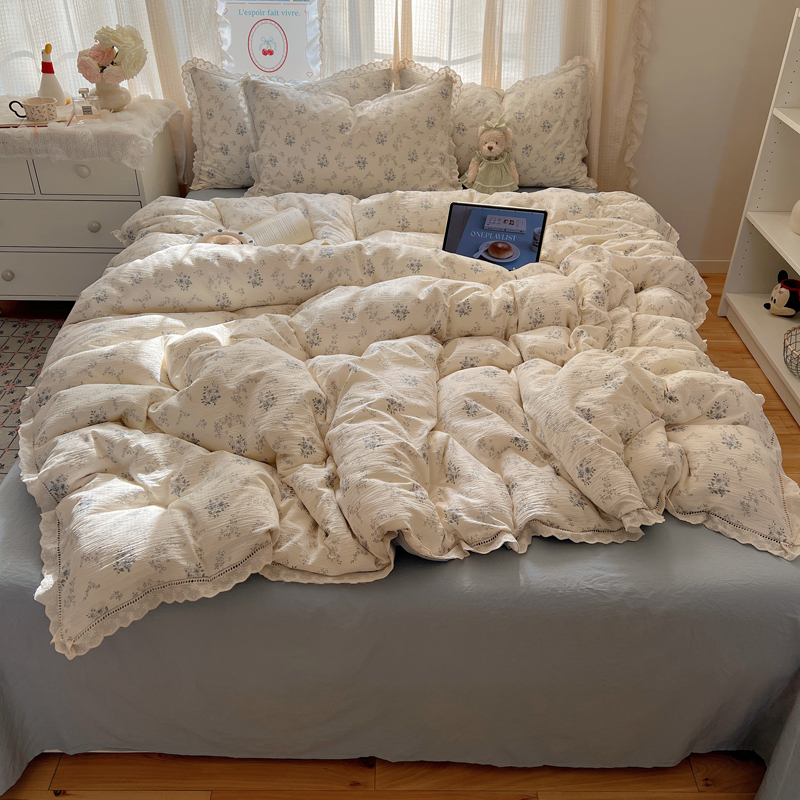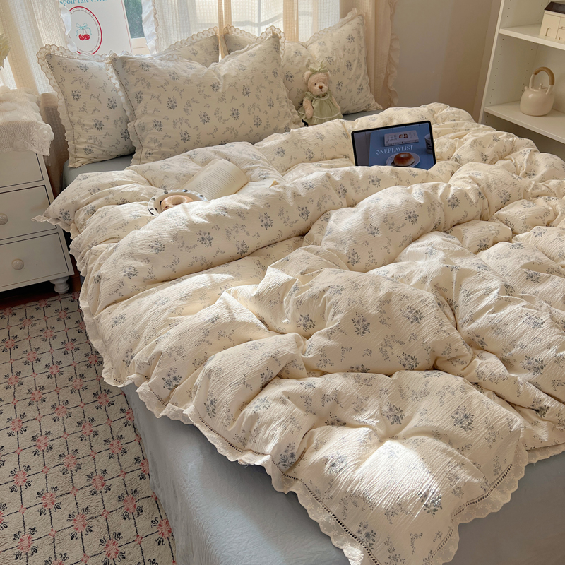 商品名称:顾里家纺 2025新款蕾丝花边云感皱皱纱四件套 秋栗蝴蝶结