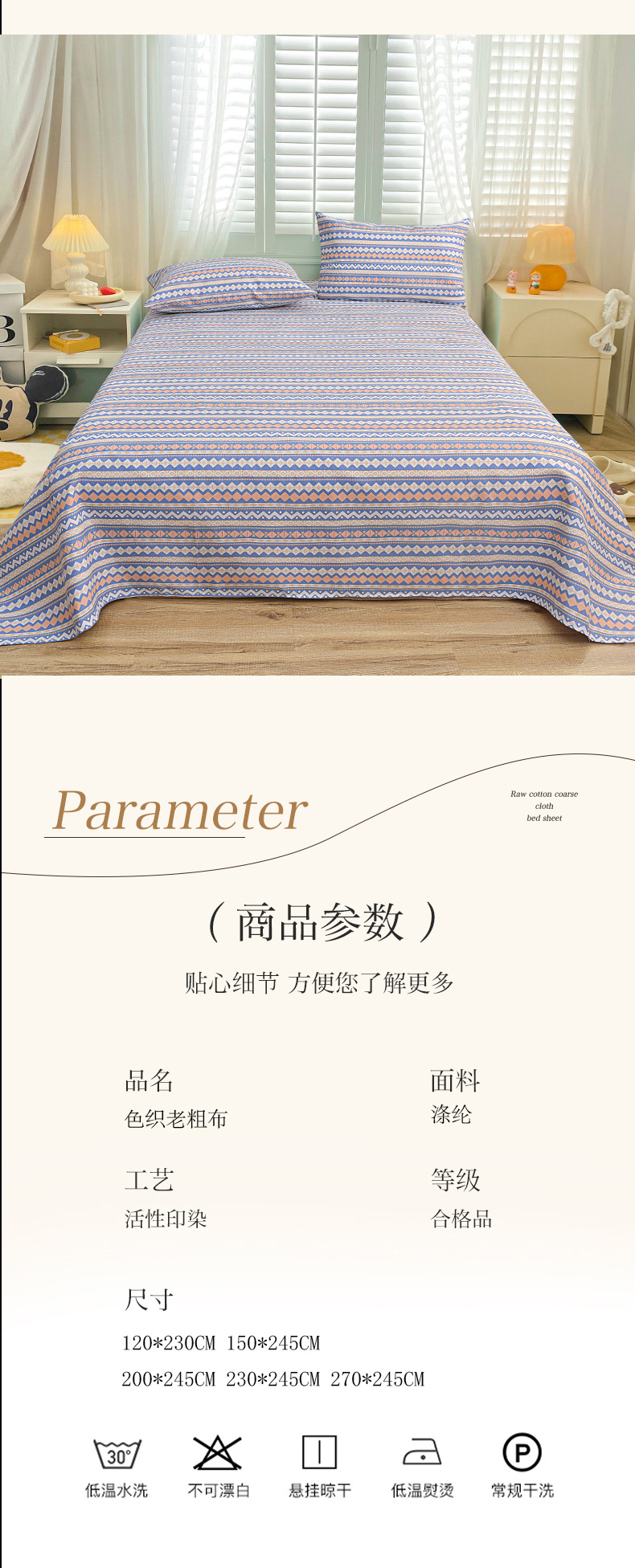 商品名称:(总)小雨家纺 2026新款原棉老粗布床单款凉席席子三件套