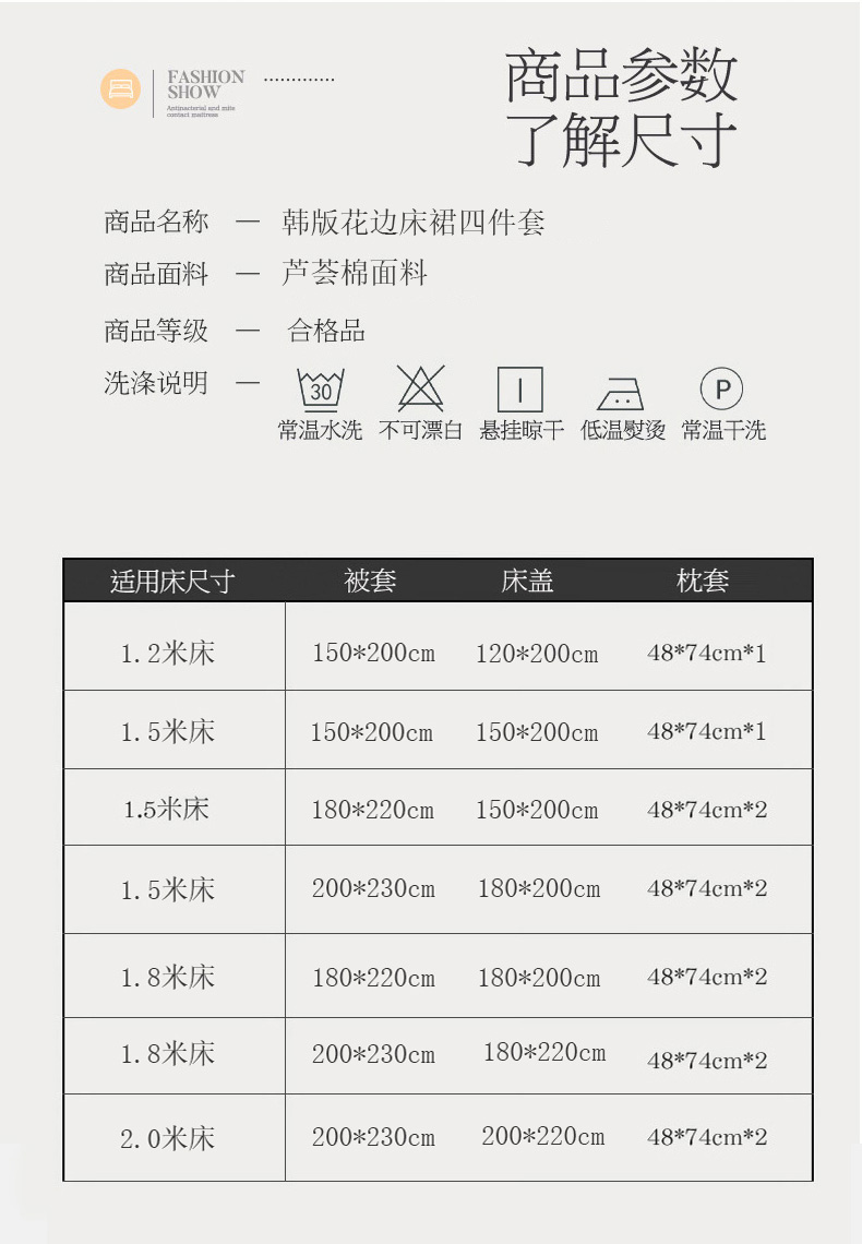 1.8x2.2m床裙四件套 被套200x230 | ¥44.00 |