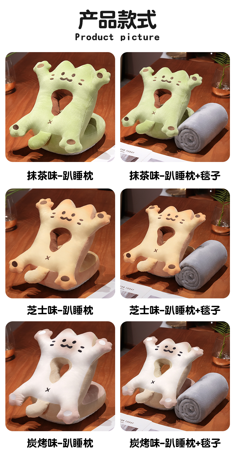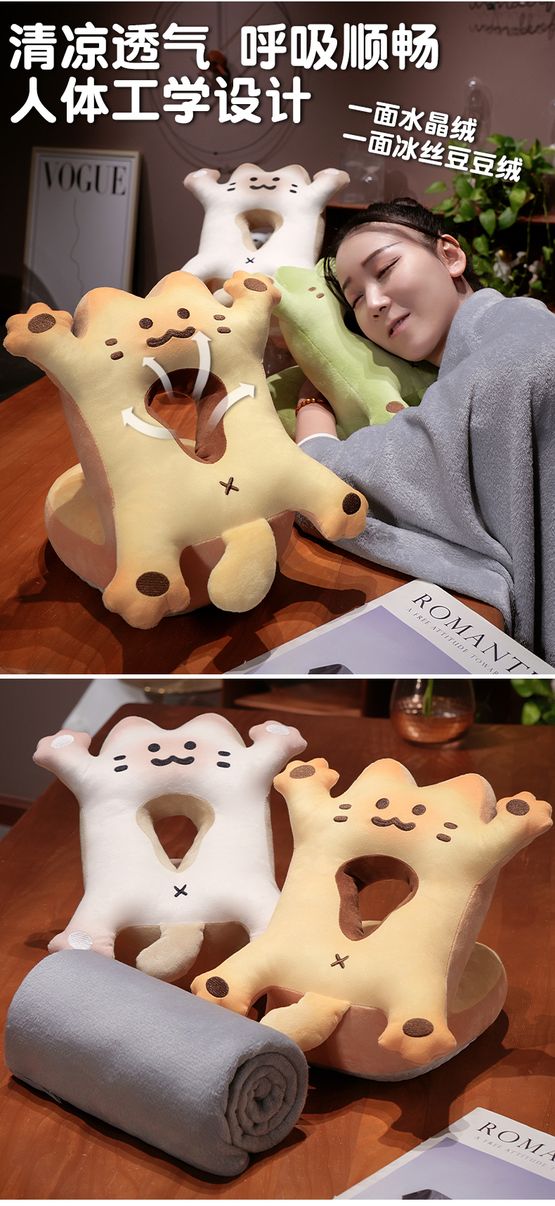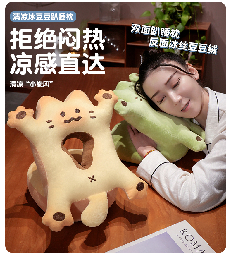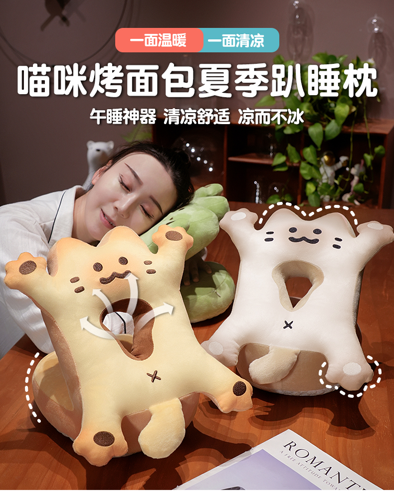 商品名称:仟亿莱 2025新款喵咪烤面包冰豆豆双面午睡枕 抹茶味双面喵喵