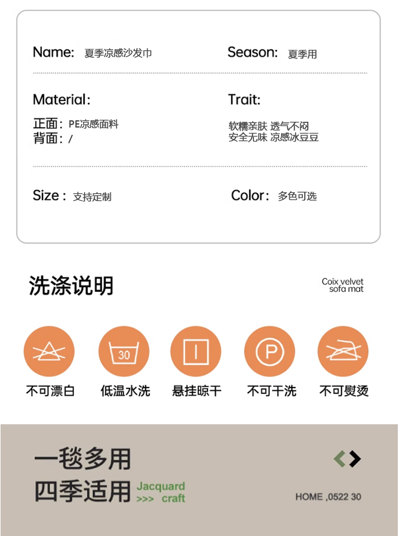 当前位置: 91家纺网 > 商品网购 > 居家布艺 > 坐垫/椅垫/沙发垫 > 沙发垫 > 共鸣沙发垫 2025新款夏季凉感沙发巾 凉感条纹
