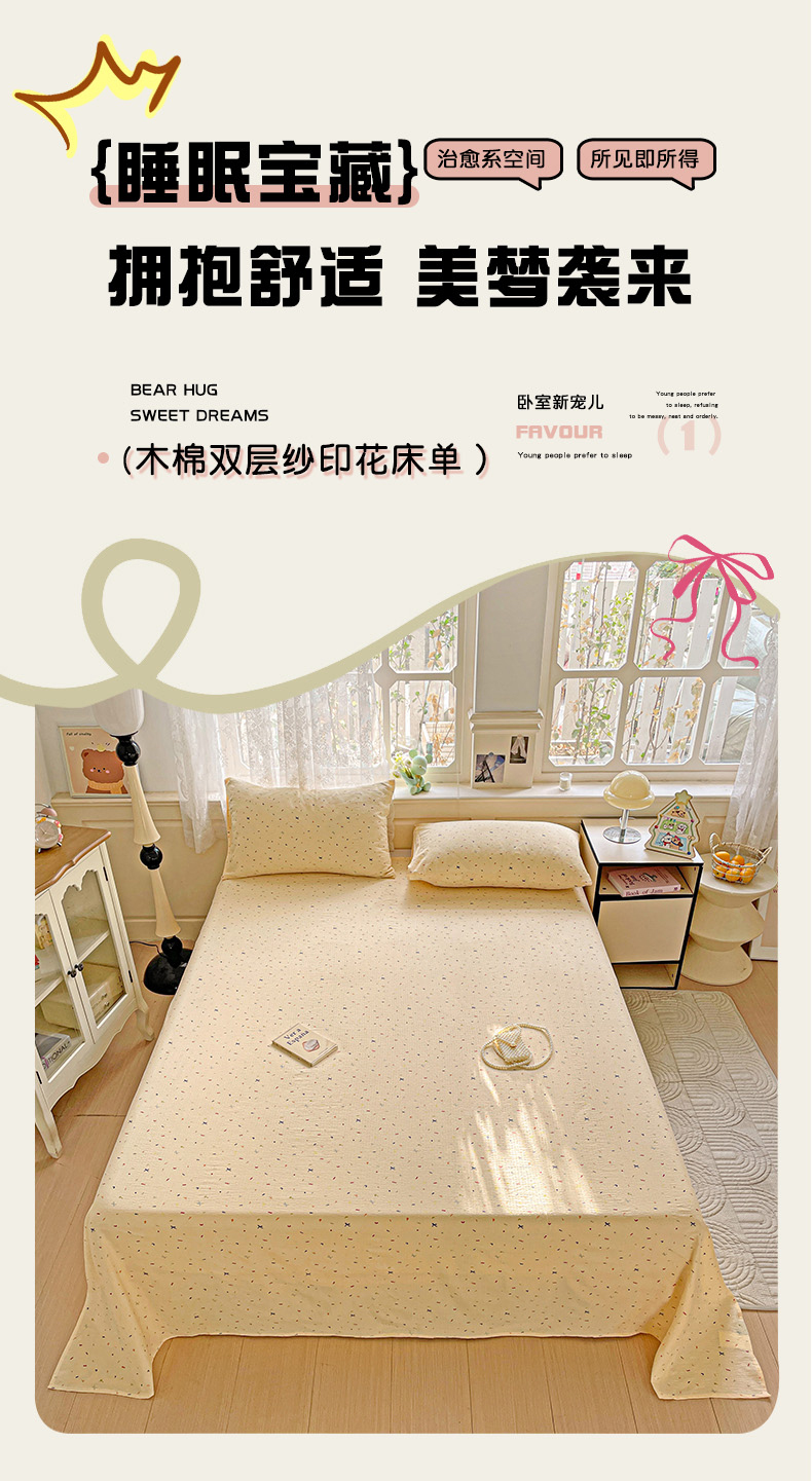 当前位置: 91家纺网 > 商品网购 > 床品套件 > 四件套 > 双层纱四件套 > 暖芯优选 2025新款母婴级ins小清新双层纱印花床单枕套三件套(提供买家秀) 缤纷世界