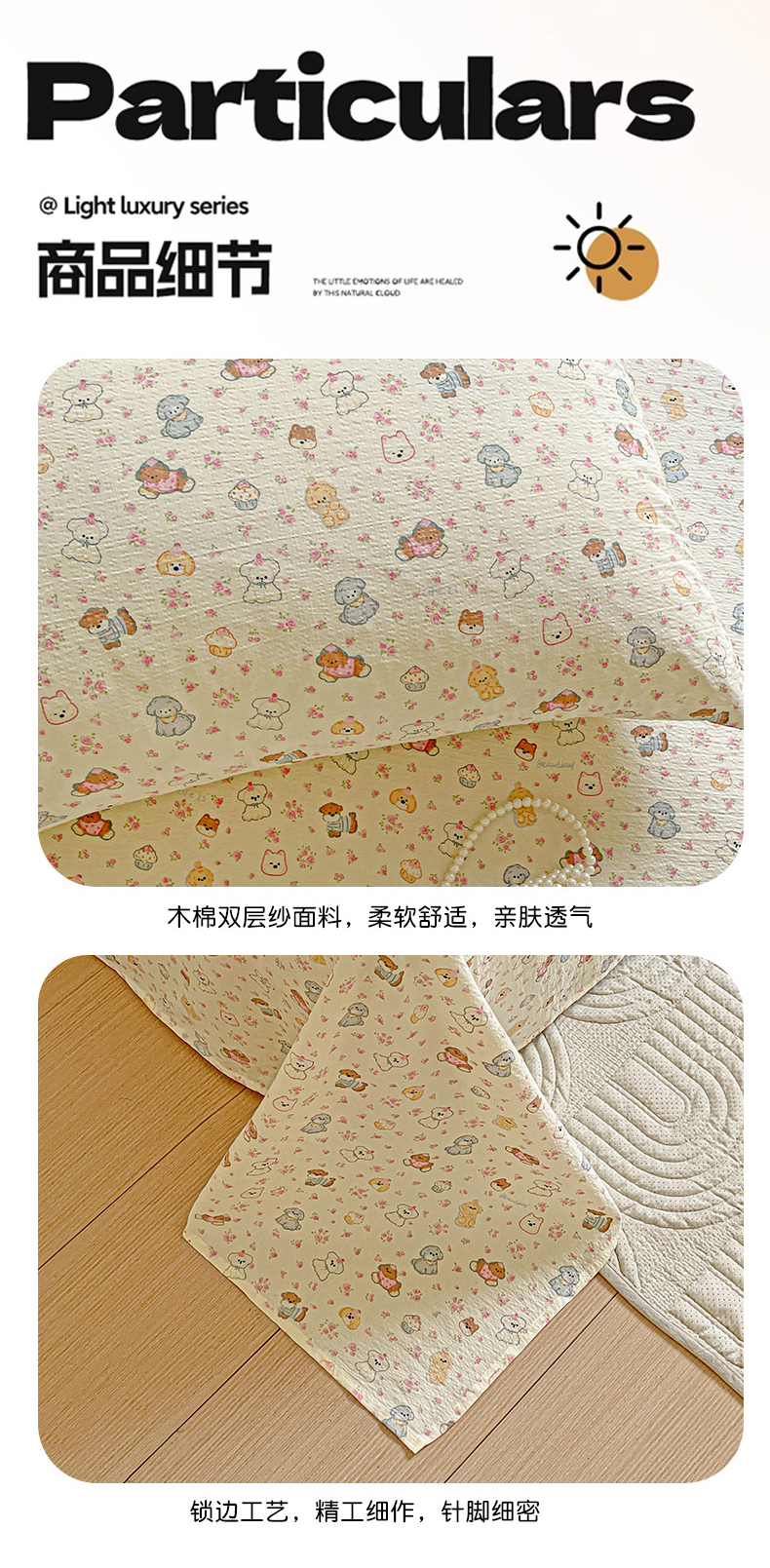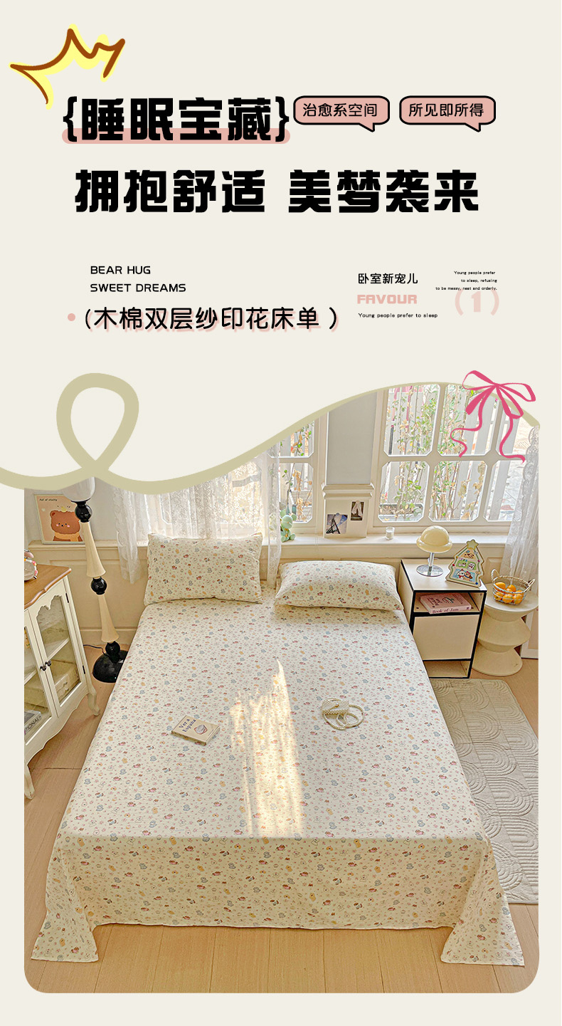当前位置: 91家纺网 > 商品网购 > 床品套件 > 四件套 > 双层纱四件套 > 暖芯优选 2025新款母婴级ins小清新双层纱印花床单枕套三件套(提供买家秀) 甜梦生活