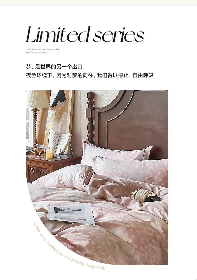 (总)由丽家纺 2025新款柔棉数码印花四件套系列,春堂 粉,椿沐,花季-绿,西琳绿,云烟-灰,踪迹 紫