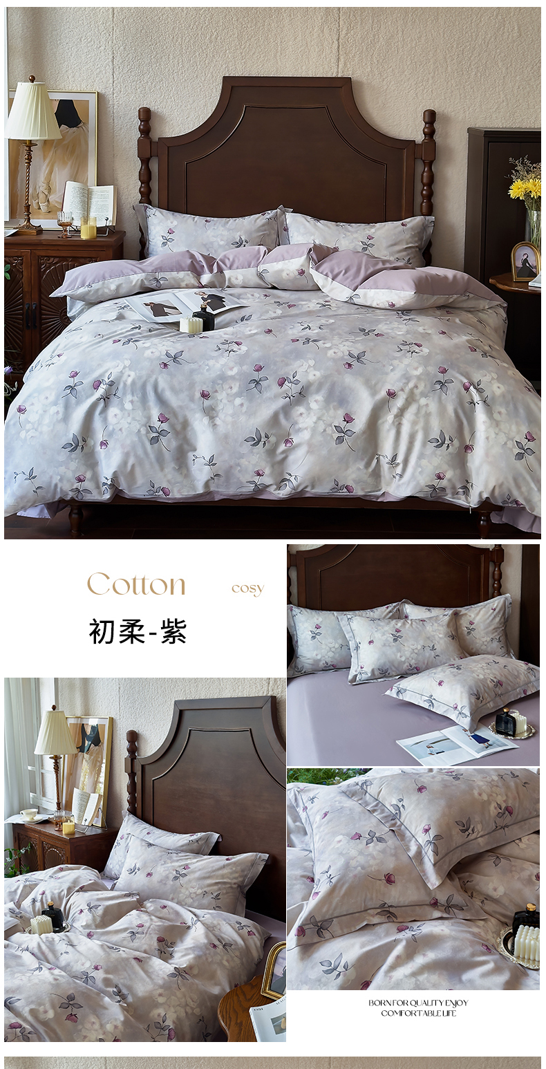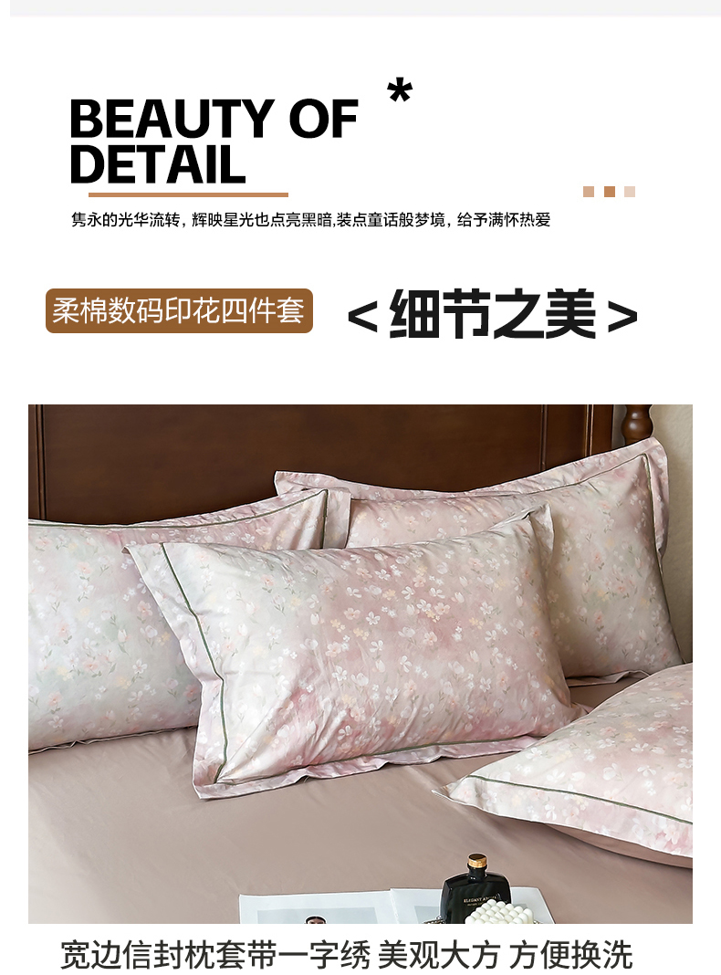(总)由丽家纺 2025新款亲肤舒适全棉纯棉臻棉数码印花四件套系列,繁花似锦,感棉-粉,金溪-灰,金溪-咖,茂林-兰,明羽-黄,沐恩-绿,野玫瑰-紫,感棉-绿,玫瑰颂-粉