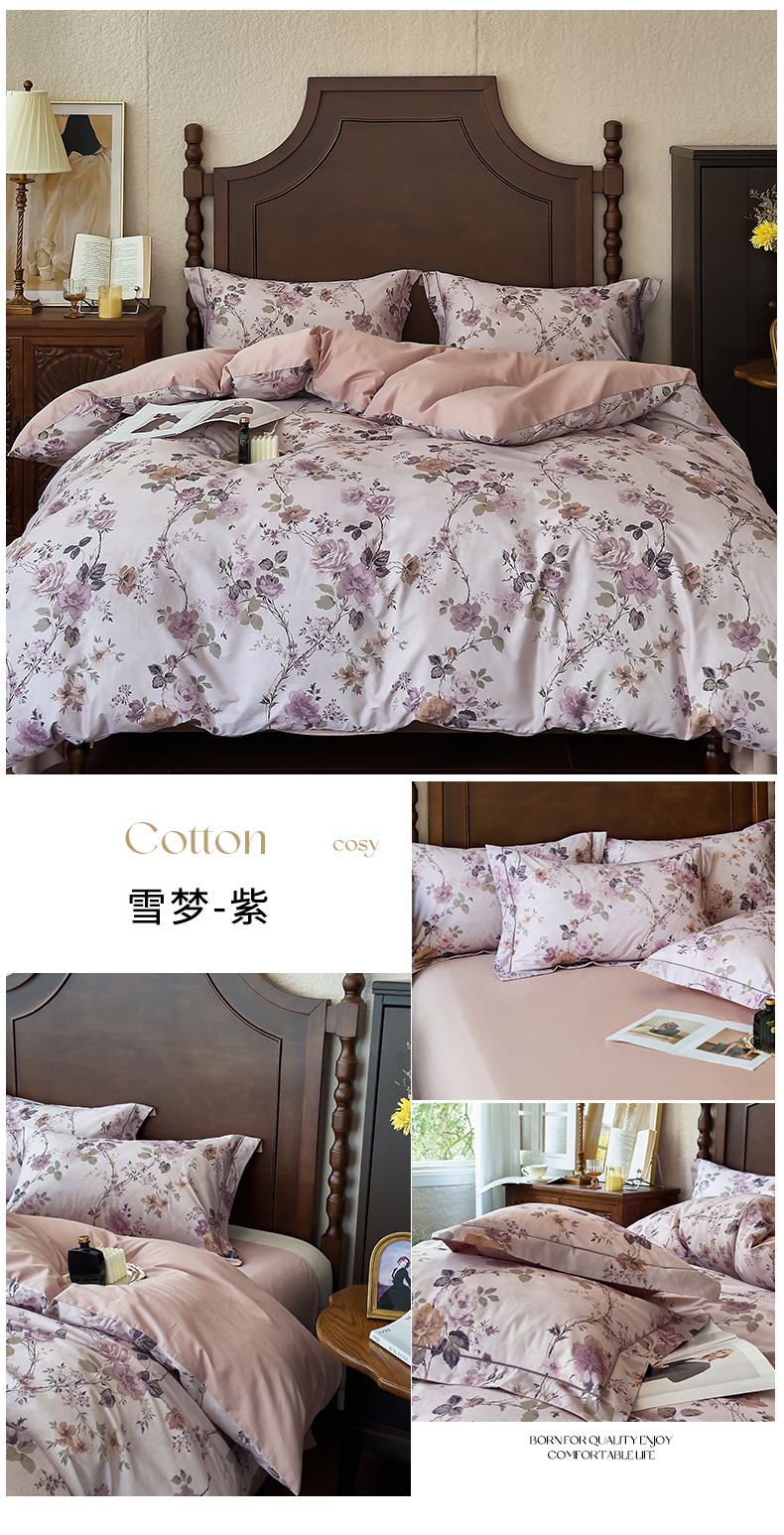 由丽家纺 2025年5月柔棉全棉纯棉数码印花床单床笠款四件套(控价券后199起) 云梦海棠