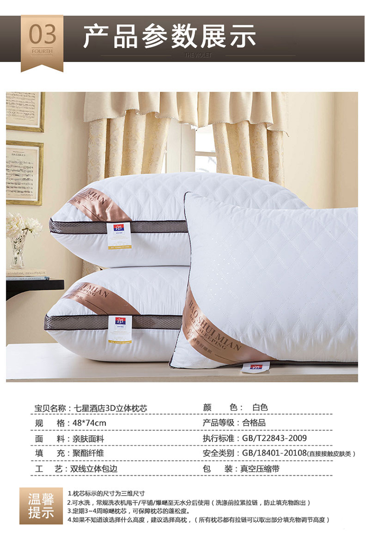 商品名称:(总)怡薇格枕芯 2025新款咖网立体绗缝酒店枕头枕芯