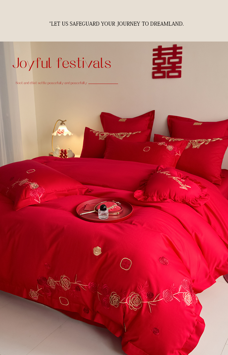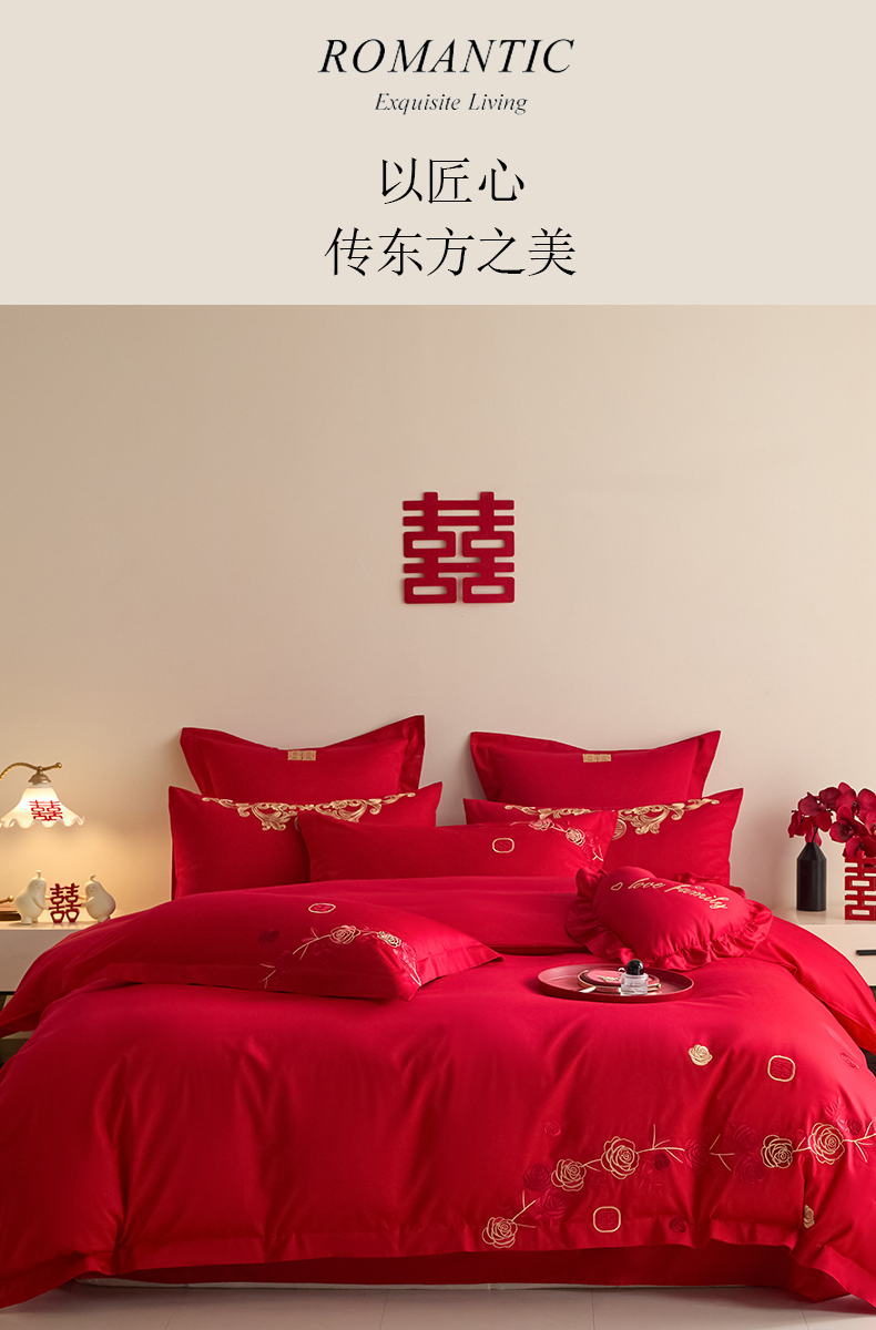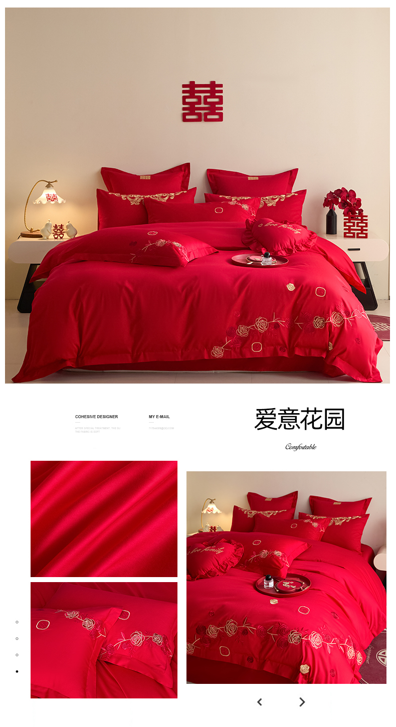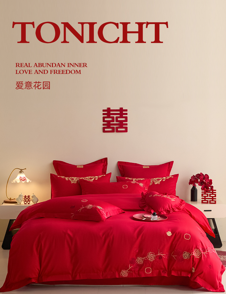当前位置: 91家纺网 > 商品网购 > 床品套件 > 四件套 > 婚庆四件套 > 东方合美(原:皇家传奇)2025新款婚庆小红书化纤系列四件套(控价138/148) 爱意花园