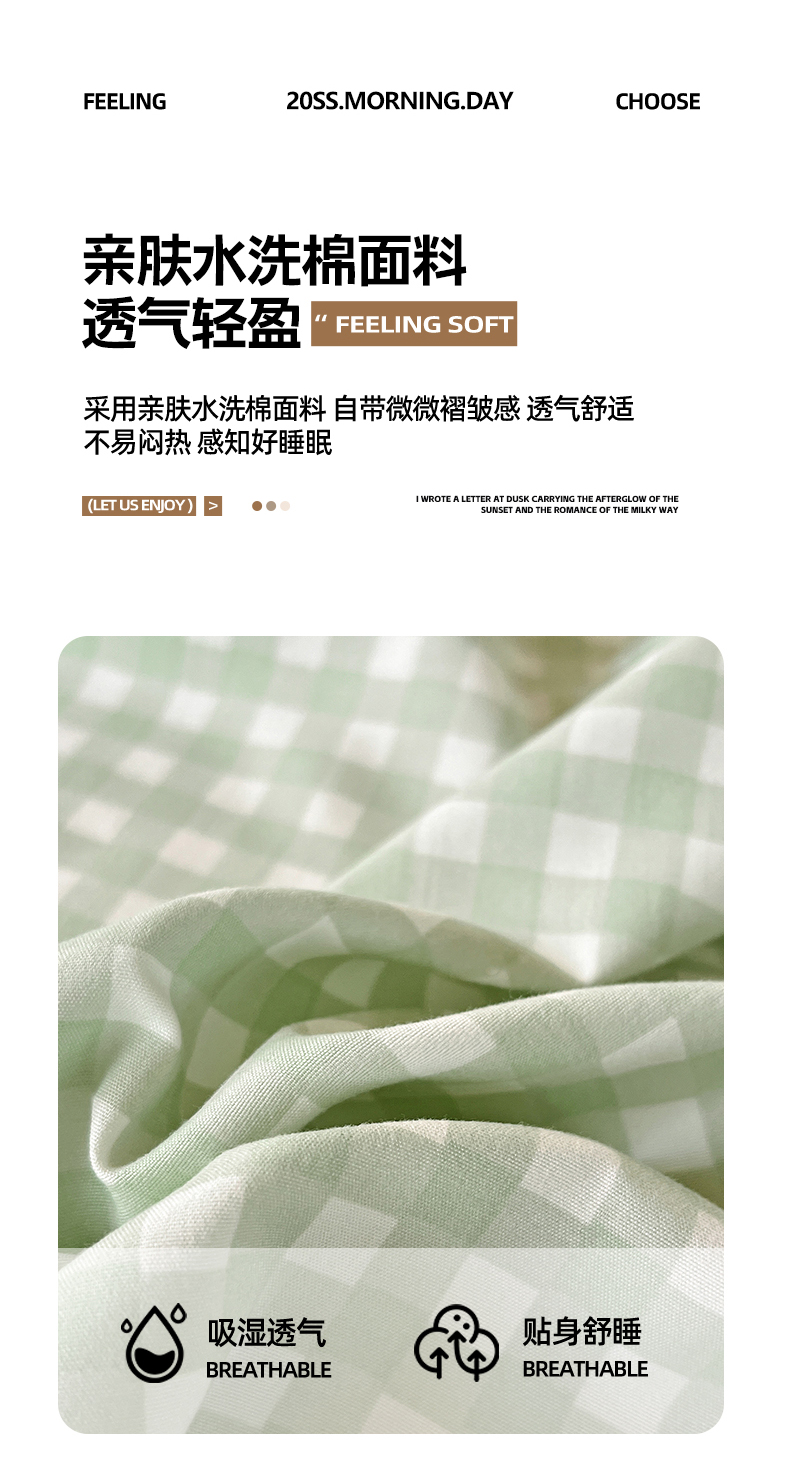 • 91家纺网 家纺一手货源 找家纺 妖妖家纺 2025新款软糯格子学生床笠 青提乐多