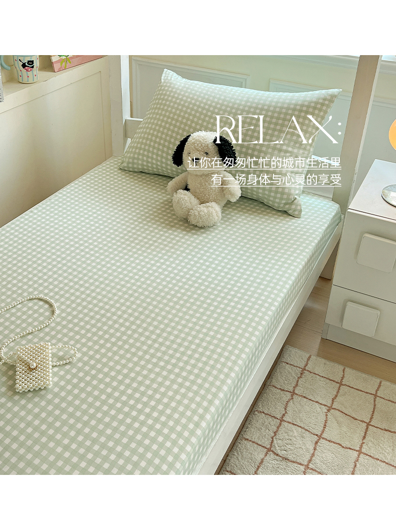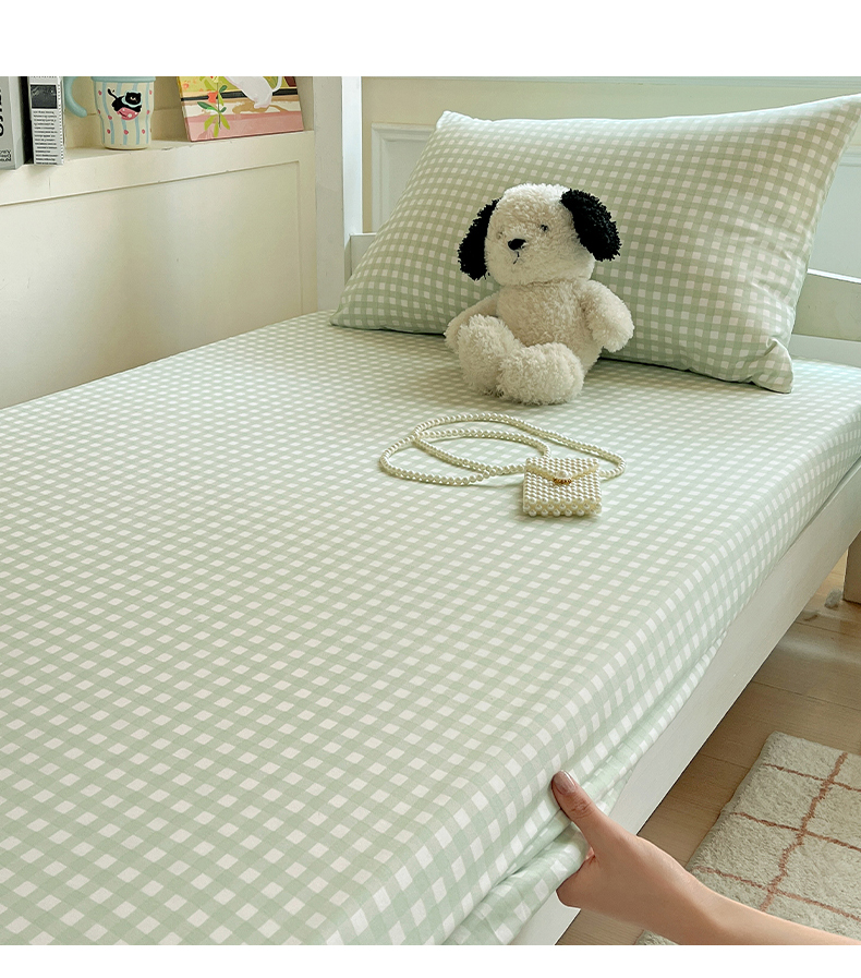 妖妖家纺 2025新款软糯格子学生床笠 青提乐多
