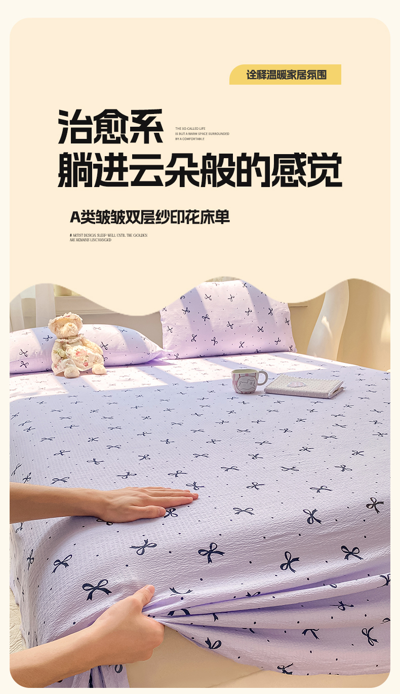 当前位置: 91家纺网 > 商品网购 > 床上用品 > 床单 > 眠势力 2025新款云感双层纱床单三件套ins奶油风学生宿舍床单四季通用 紫韵蝴蝶结
