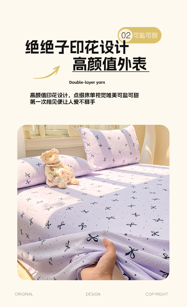 • 91家纺网 家纺一手货源 找家纺 眠势力 2025新款云感双层纱床单三件套ins奶油风学生宿舍床单四季通用 紫韵蝴蝶结