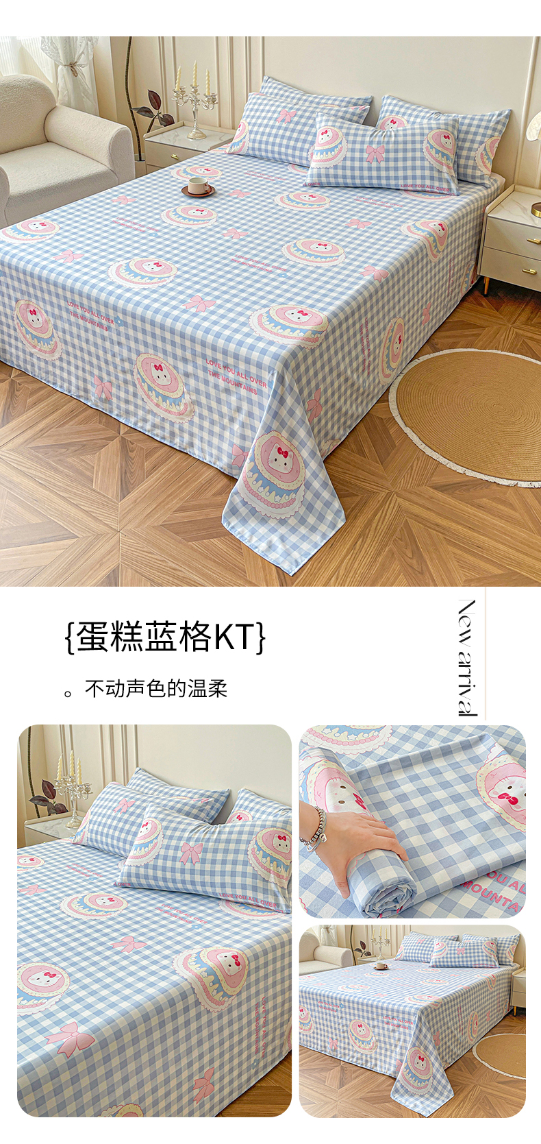 商品名称:纽缦家纺 2025新款水洗双层纱床单 蛋糕蓝格kt