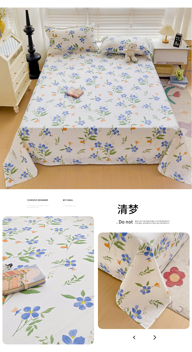 商品名称:纽缦家纺 2025新款纯棉斜纹床单单品床单床单单件 清梦
