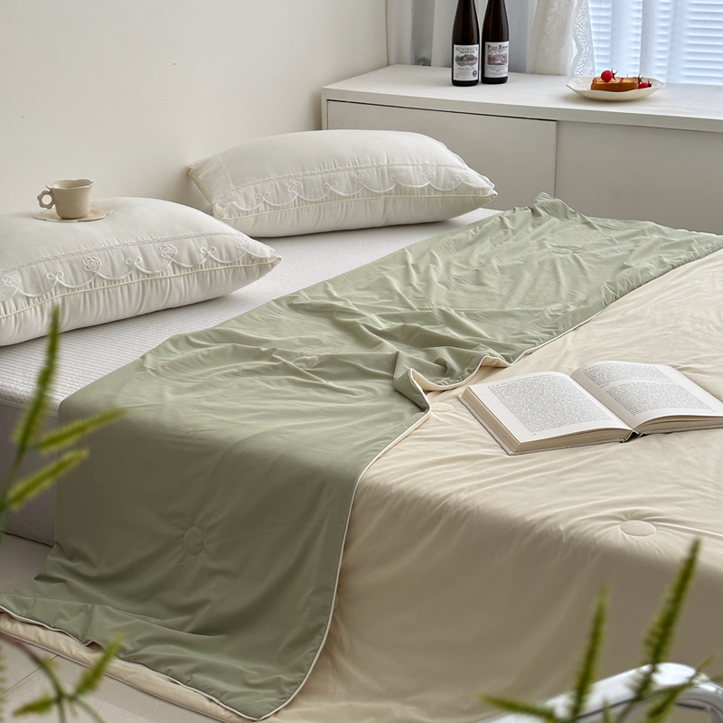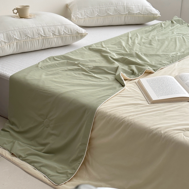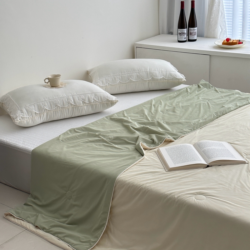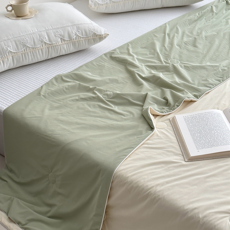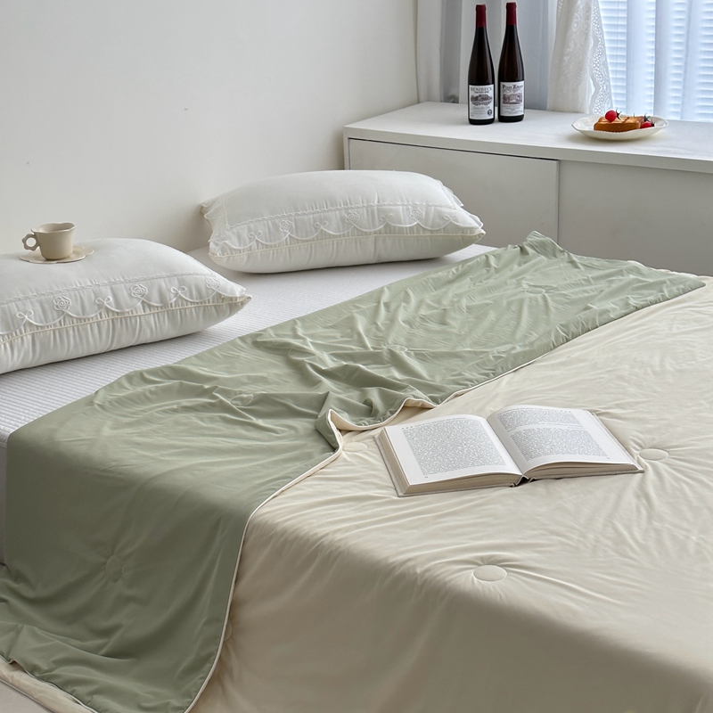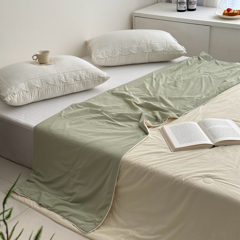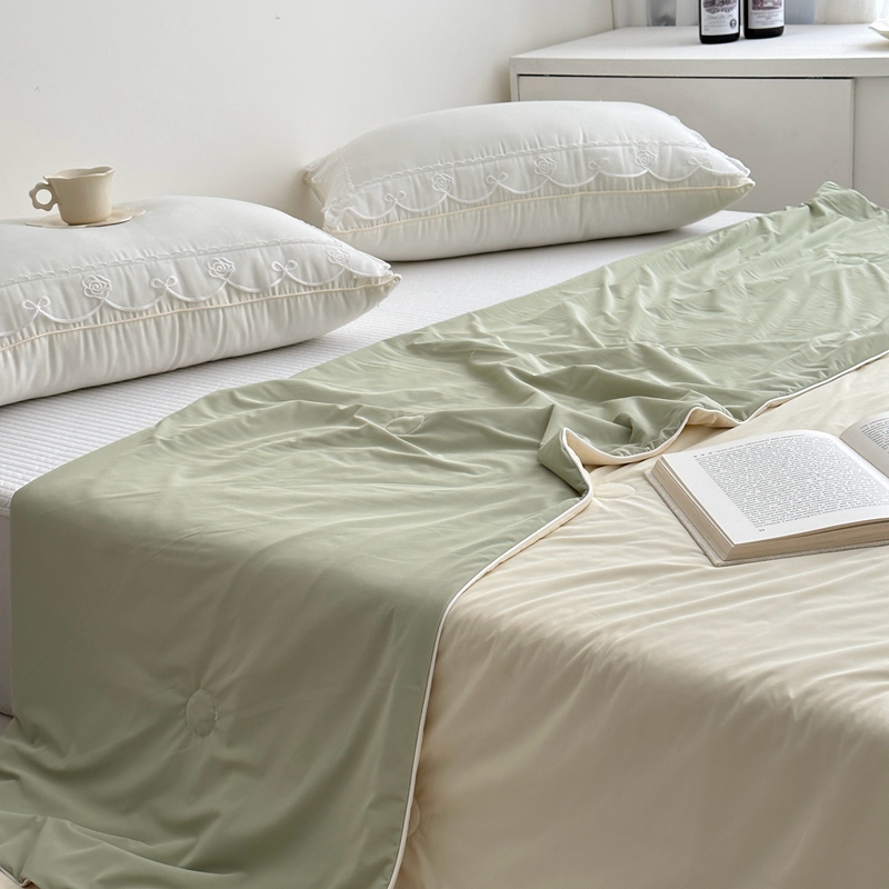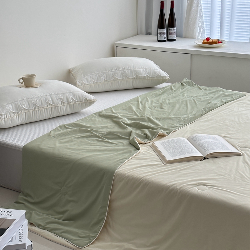 • 91家纺网 家纺一手货源 找家纺 佰织鑫家居 2025新款科技凉感小冰芯冰皮锦氨凉感丝夏被空调被 双拼柠檬黄