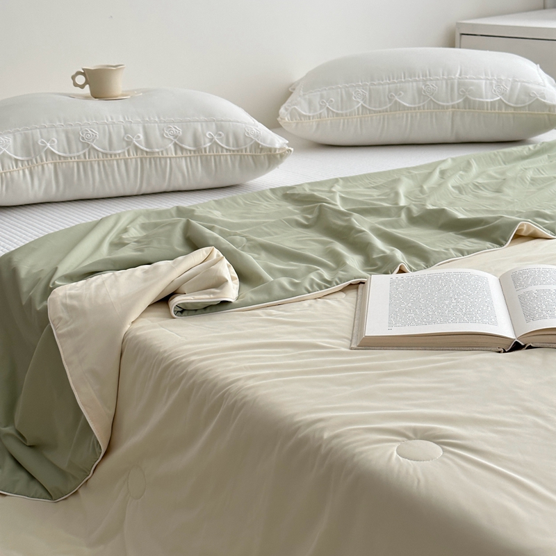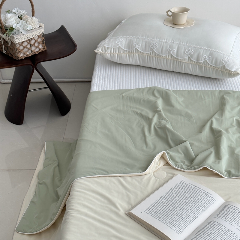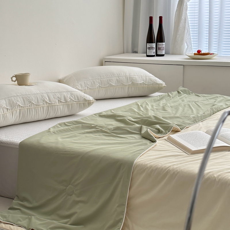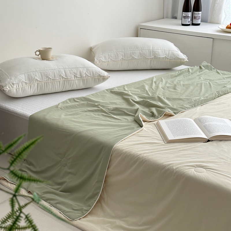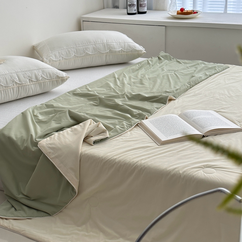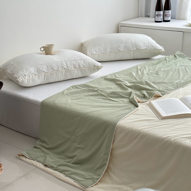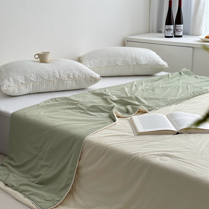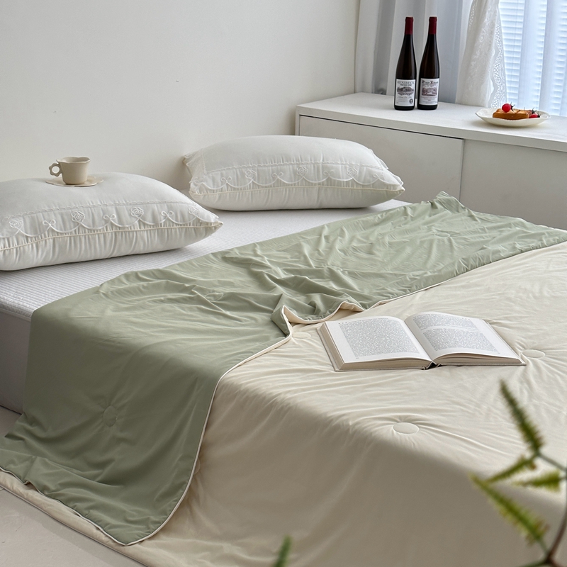 • 91家纺网 家纺一手货源 找家纺 佰织鑫家居 2025新款科技凉感小冰芯冰皮锦氨凉感丝夏被空调被 双拼柠檬黄