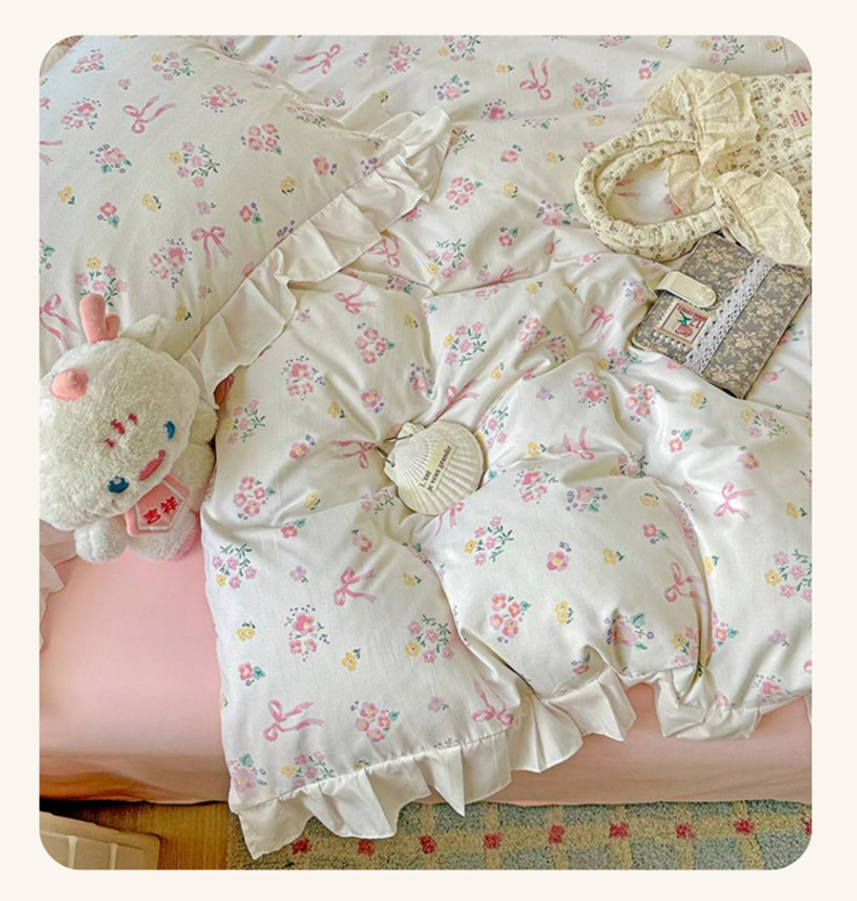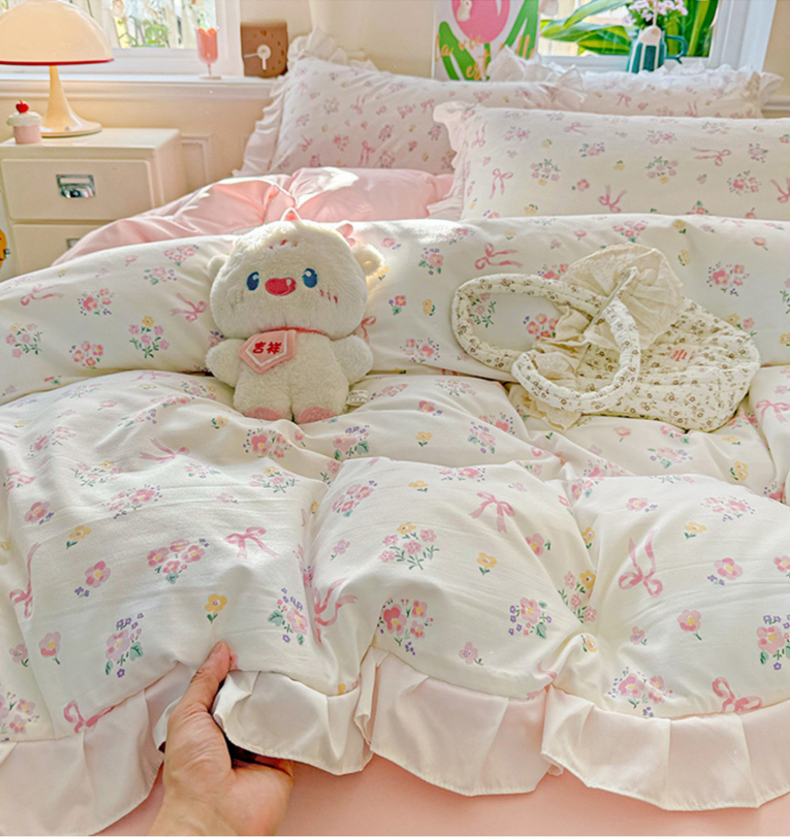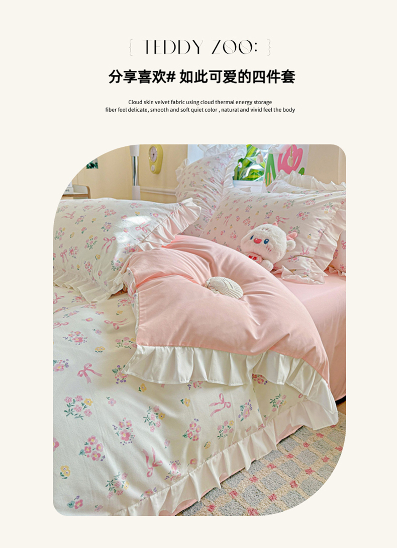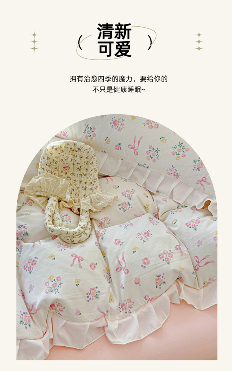 商品名称:(总)雨菲家纺 2025新款学生季小清新公主风荷叶花边印花三件套四件套床单床笠款清新公主风荷叶花边印花三件套四件套床单床笠款