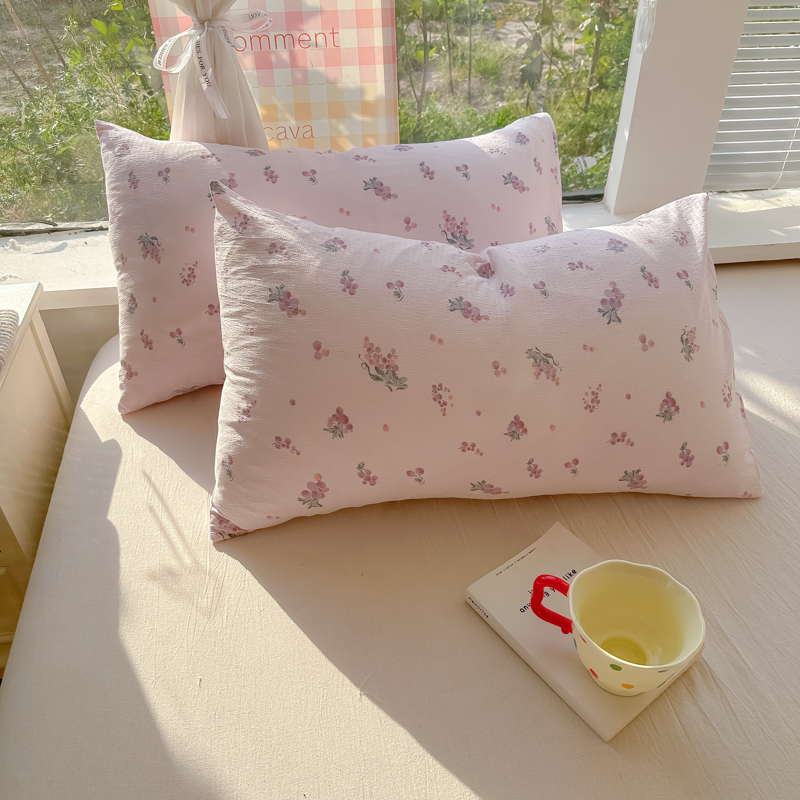 韩巢家纺 2025新款云感提花双层纱枕套头套枕芯套 葡萄七分甜