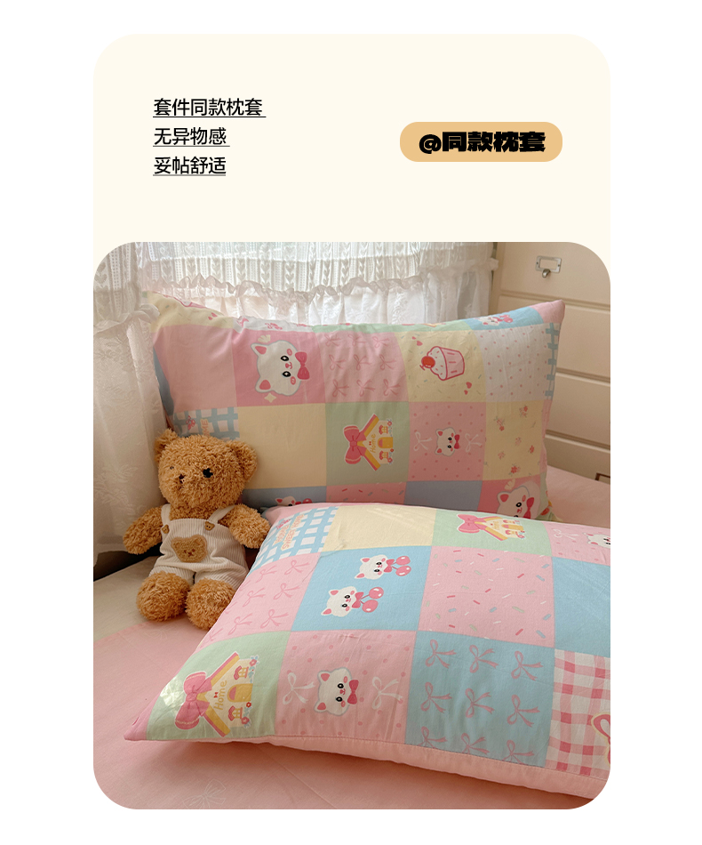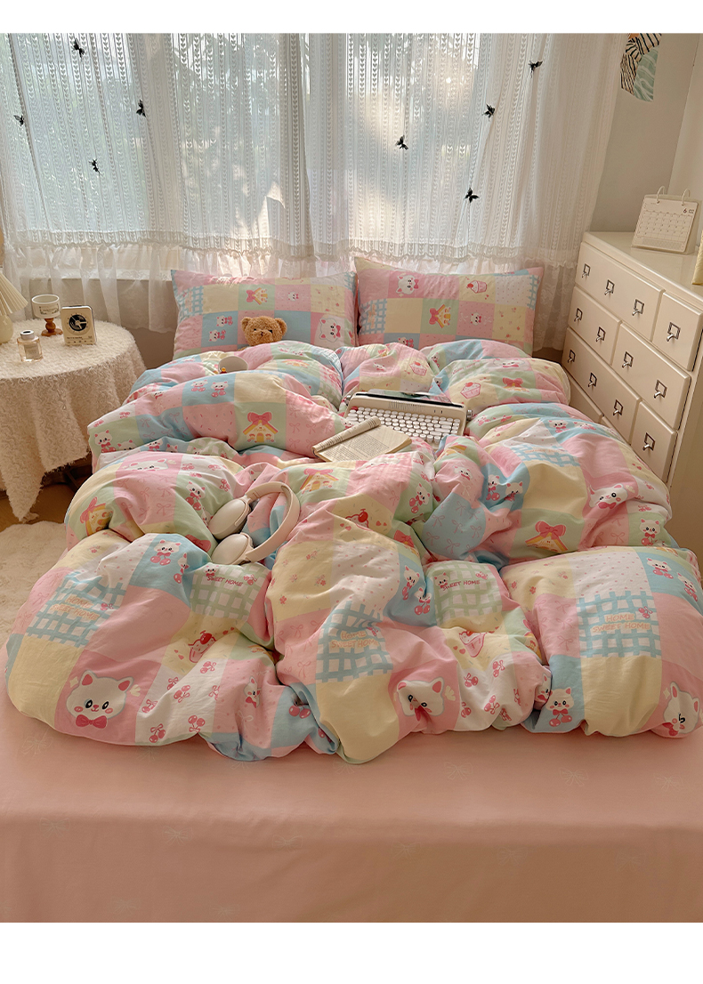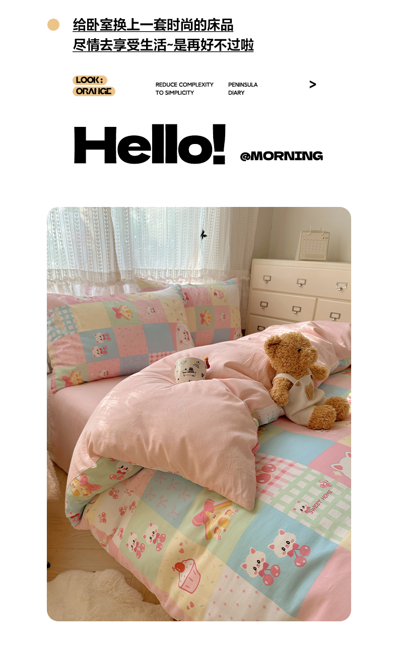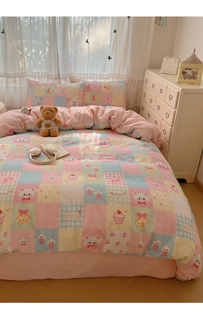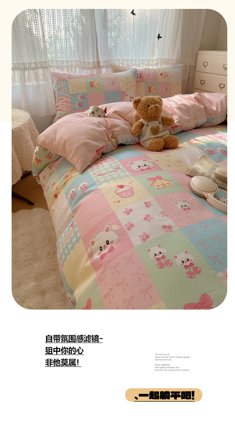当前位置: 91家纺网 > 商品网购 > 床品套件 > 四件套 > 全棉普通四件套 > 雅居纺家纺 2025春夏新款全棉纯棉印花四件套 樱桃猫咪