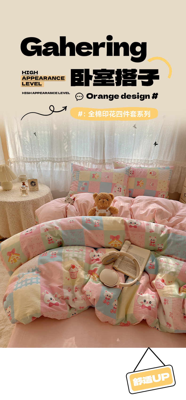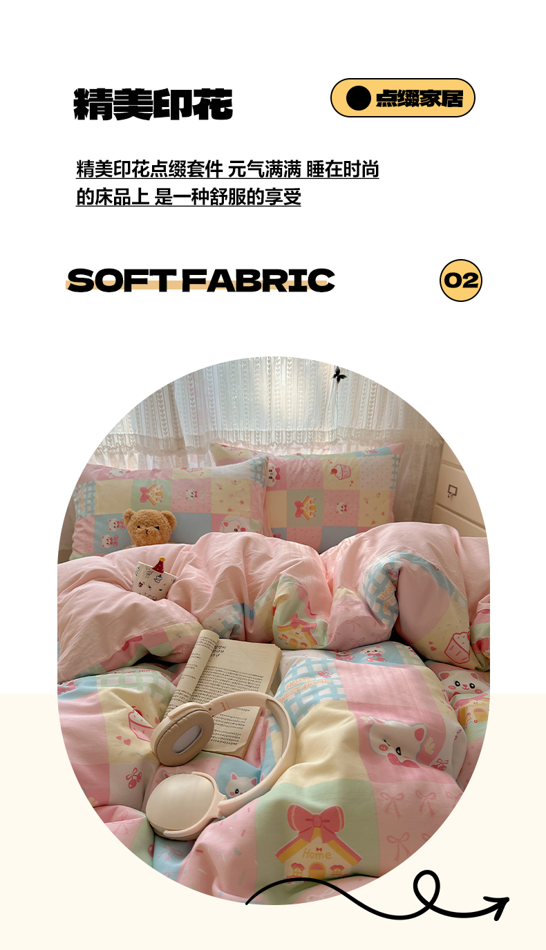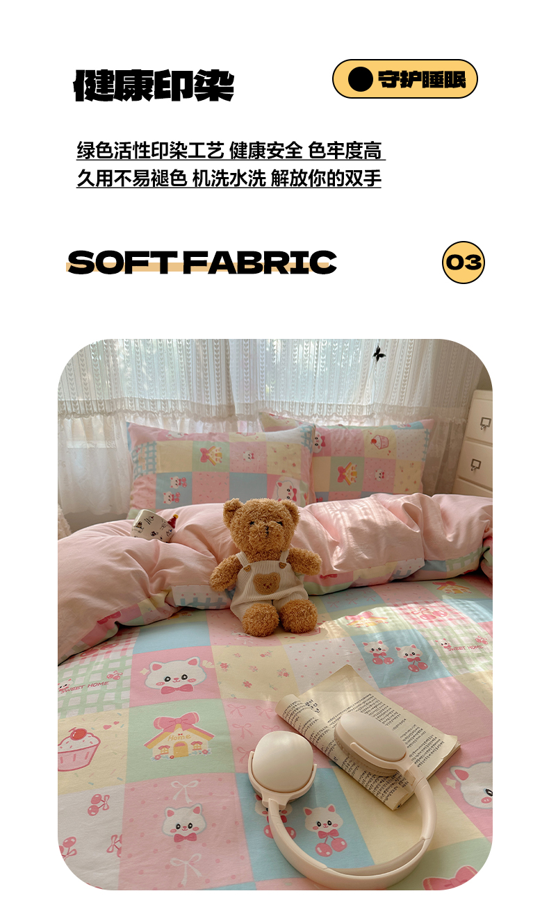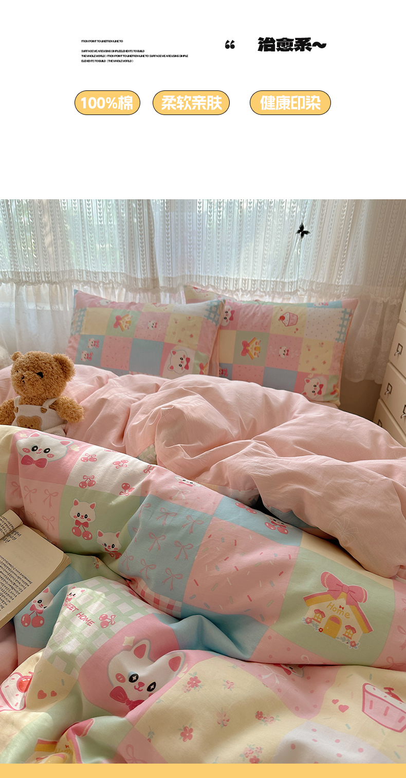 当前位置: 91家纺网 > 商品网购 > 床品套件 > 四件套 > 全棉普通四件套 > 雅居纺家纺 2025春夏新款全棉纯棉印花四件套 樱桃猫咪