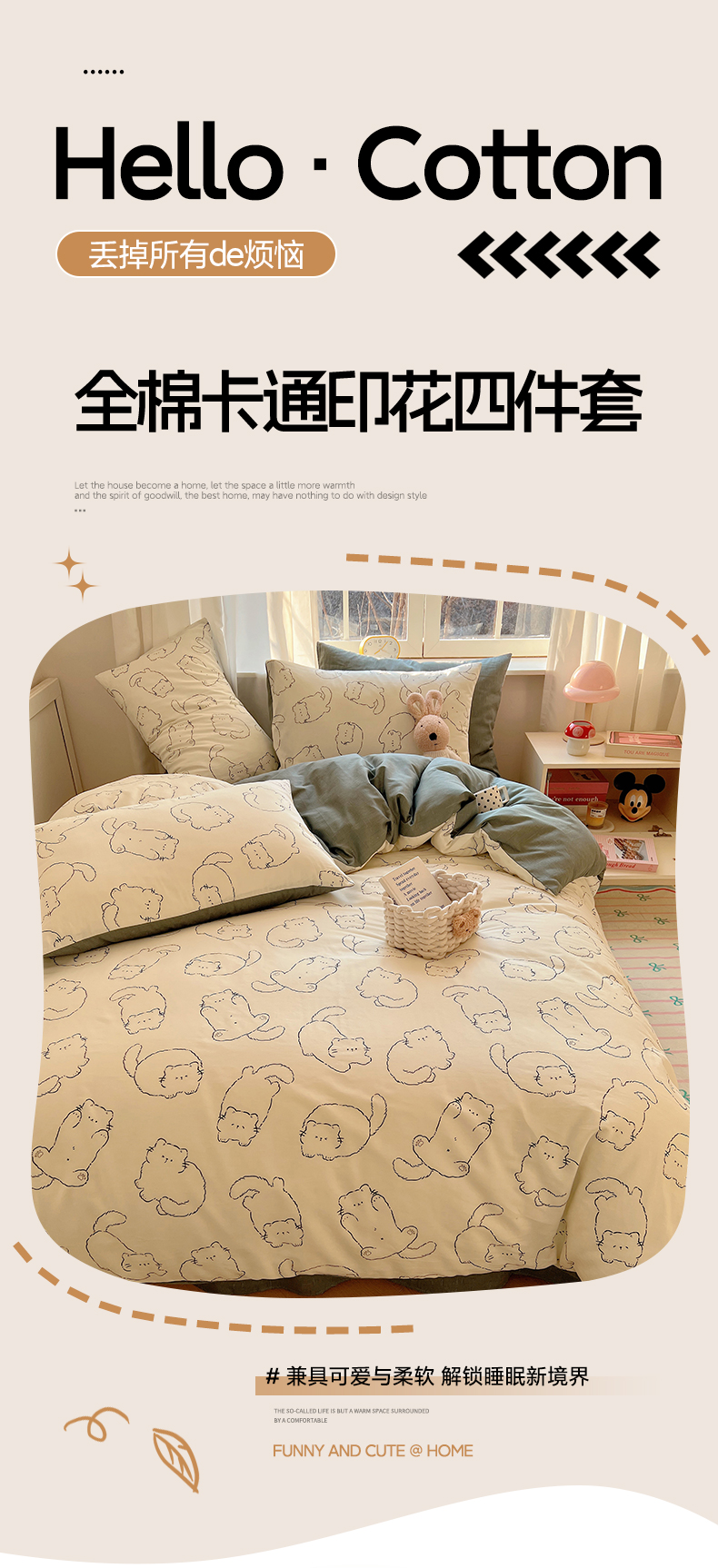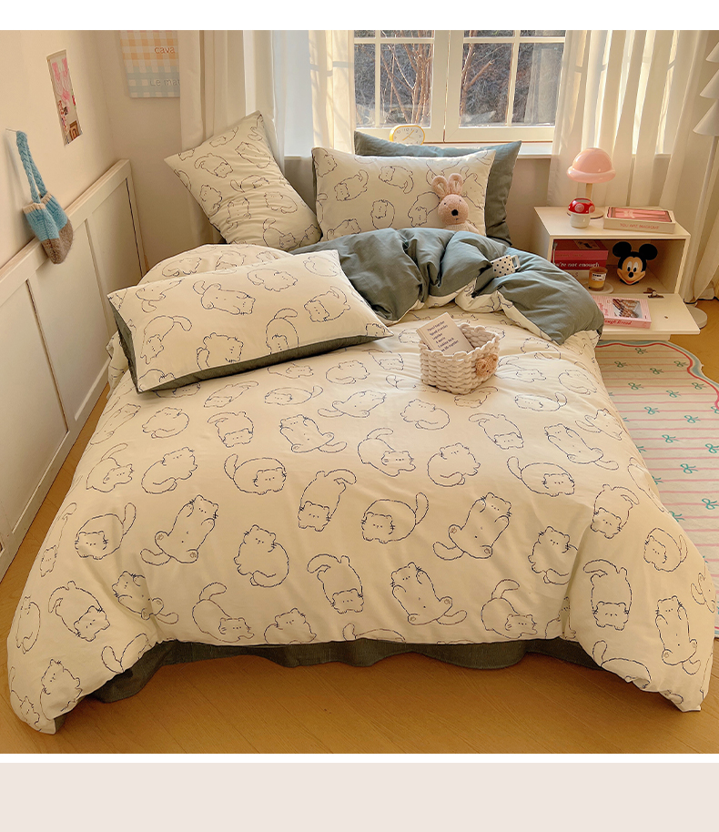 当前位置: 91家纺网 > 商品网购 > 床品套件 > 四件套 > 全棉普通四件套 > 雅居纺家纺 2025春夏新款全棉纯棉印花四件套 猫猫汇