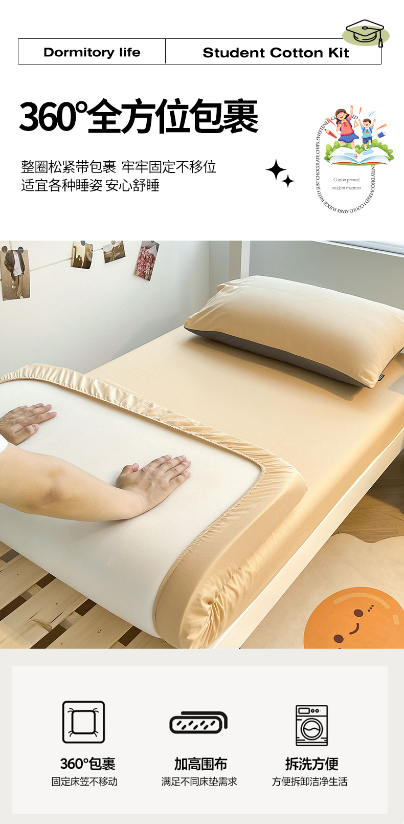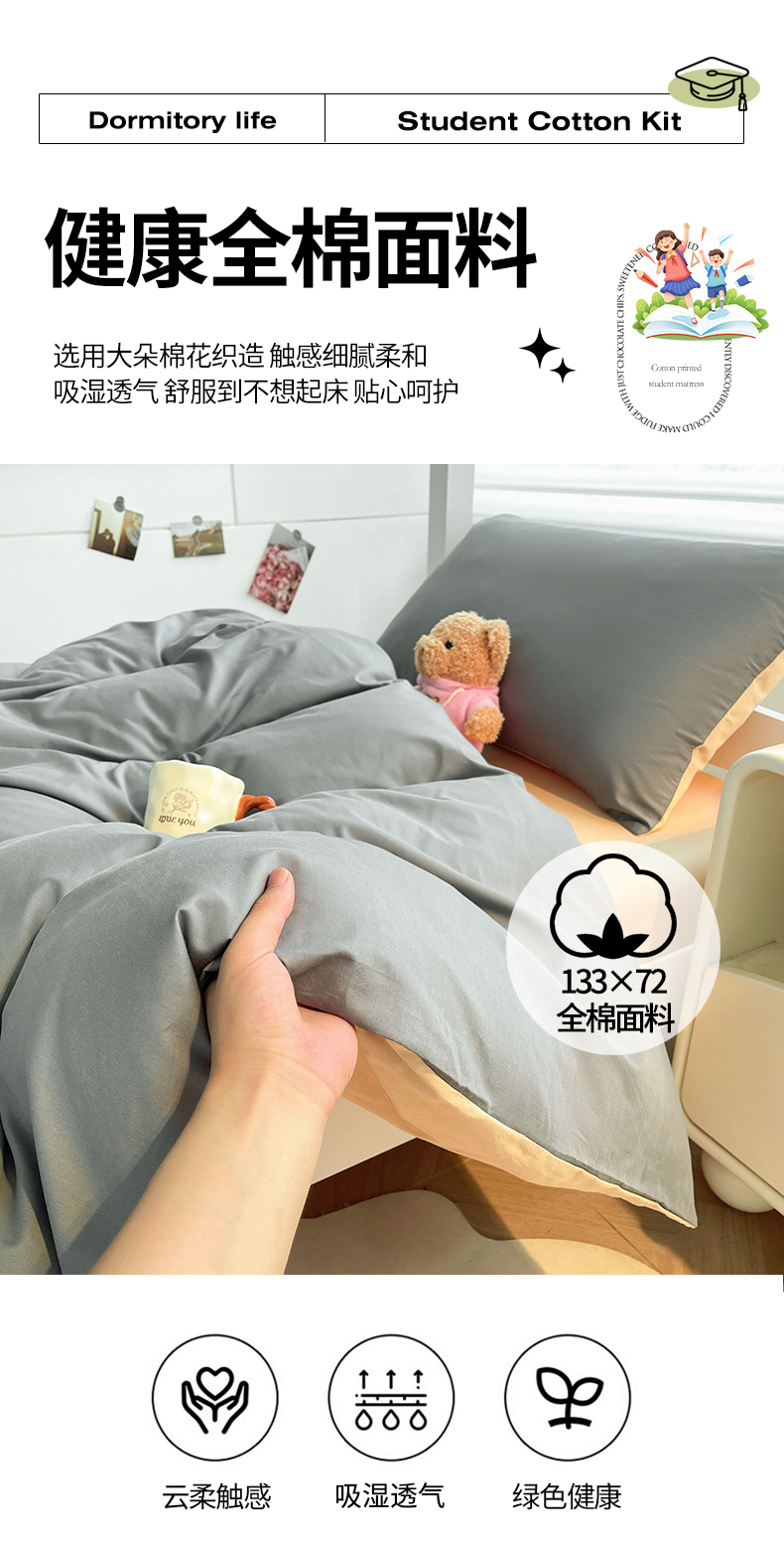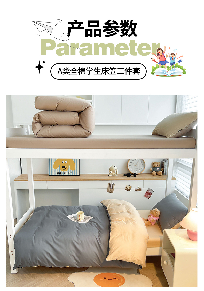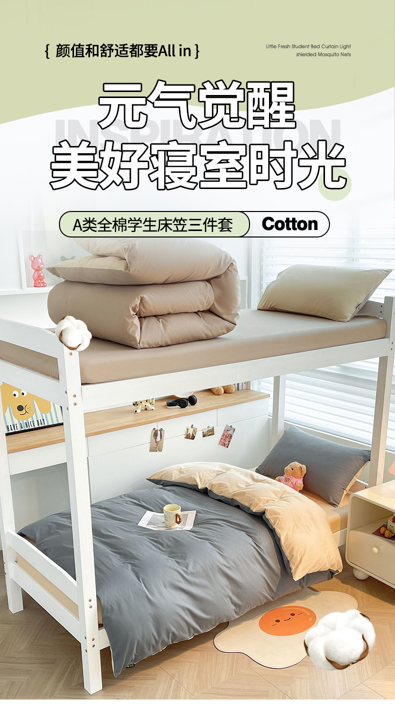 当前位置: 91家纺网 > 商品网购 > 床品套件 > 三件套 > 澳梵家居 2025春夏新款13372全棉纯棉学生宿舍上下铺三件套床笠款 星灰 香槟