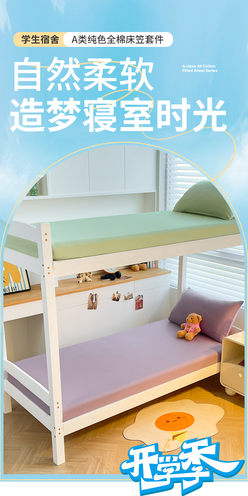 • 91家纺网 家纺一手货源 找家纺 (总)澳梵家居 2025春夏新款13372全棉纯棉学生宿舍上下铺单床笠床笠单件,黛紫,果绿,莓粉,梦蓝,奶咖,雾粉,香槟,星灰,杏黄,烟灰