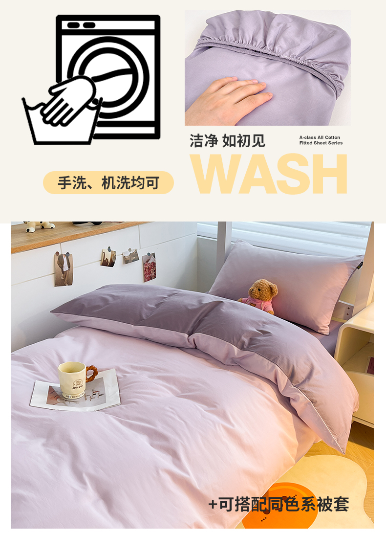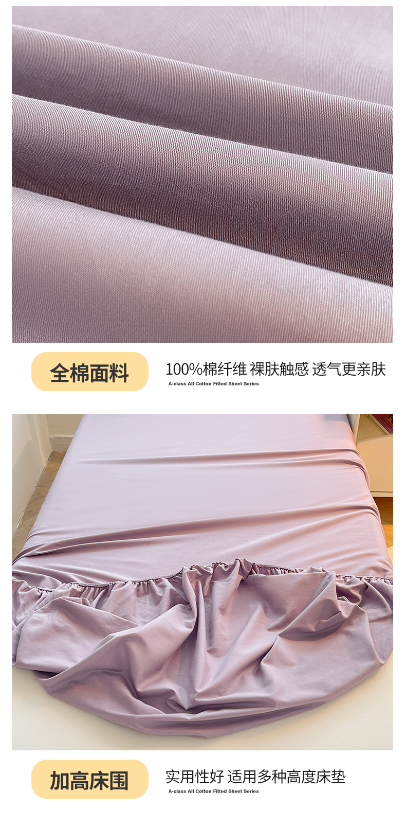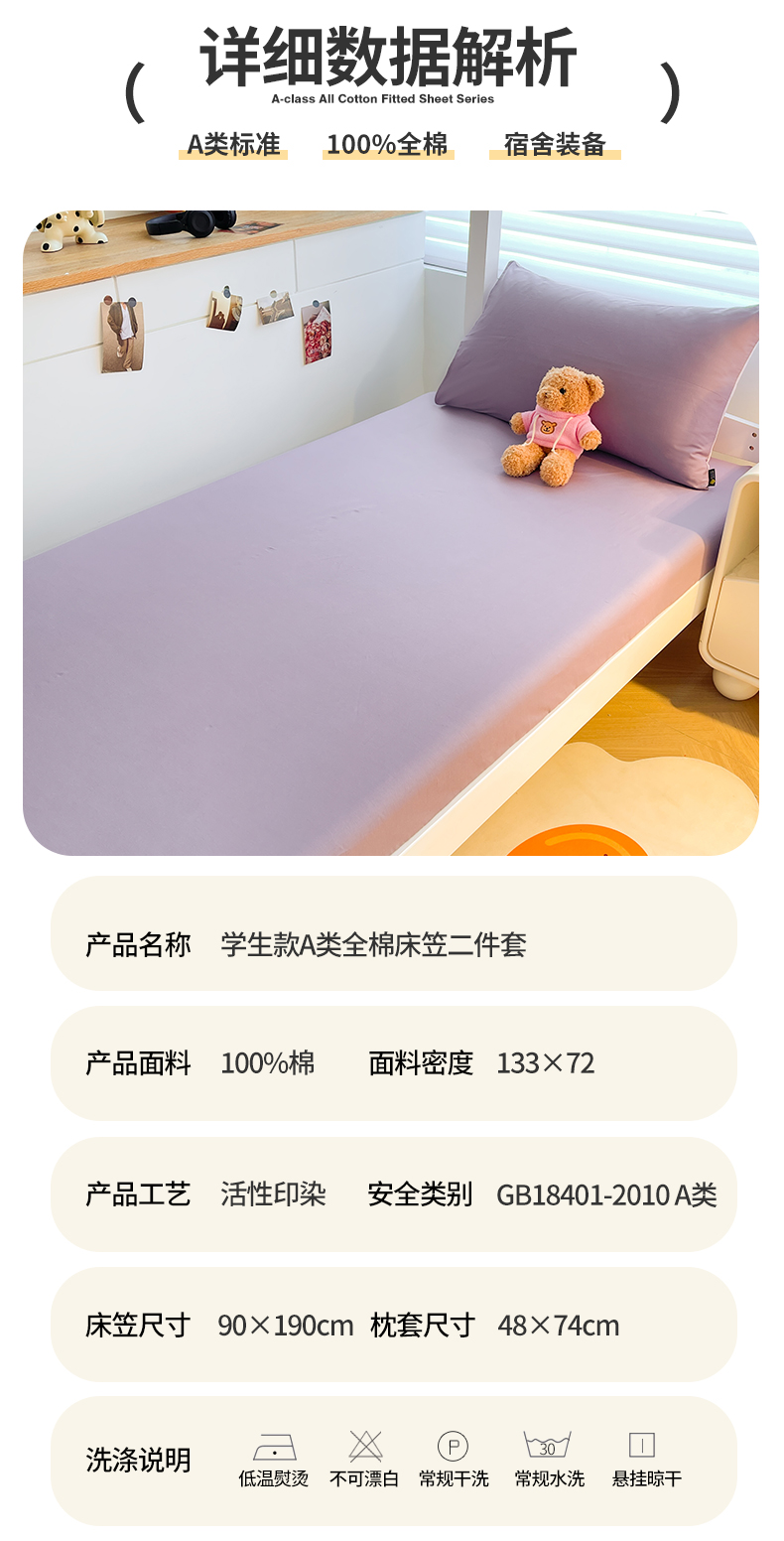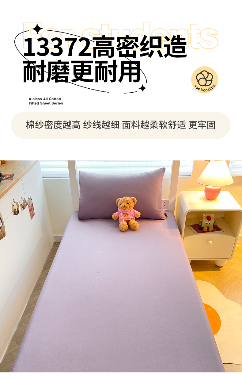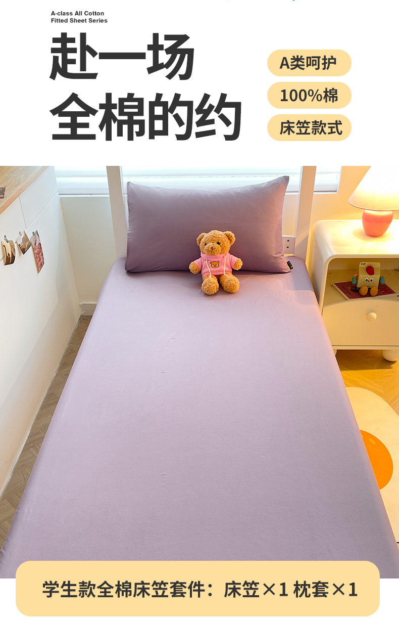 • 91家纺网 家纺一手货源 找家纺 澳梵家居 2025春夏新款13372全棉纯棉学生宿舍上下铺单床笠床笠单件 黛紫