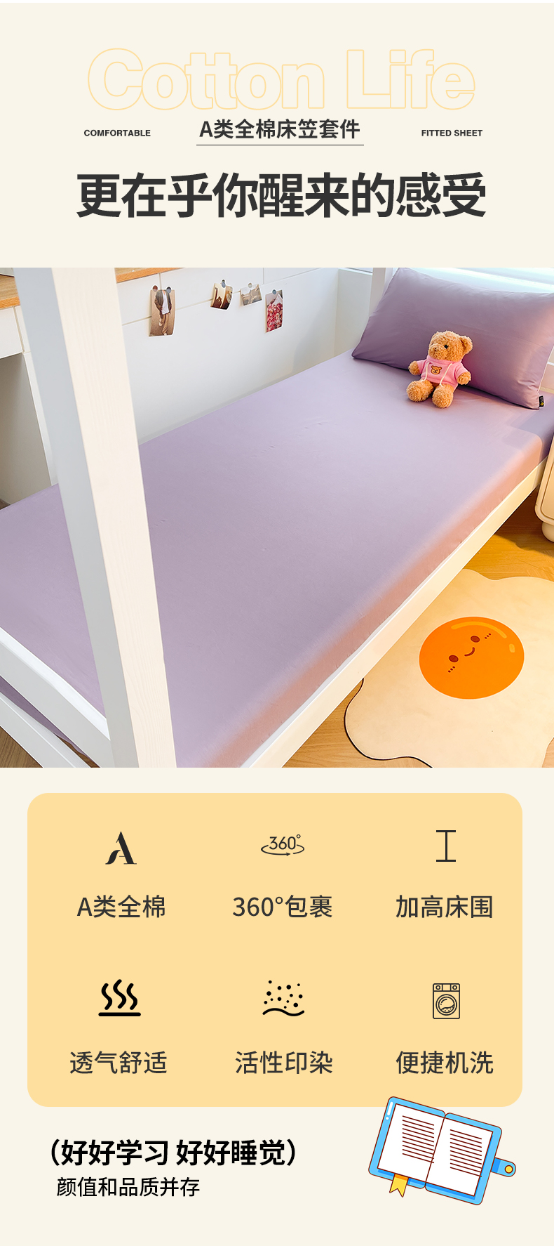 澳梵家居 2025春夏新款13372全棉纯棉学生宿舍上下铺单床笠床笠单件 黛紫