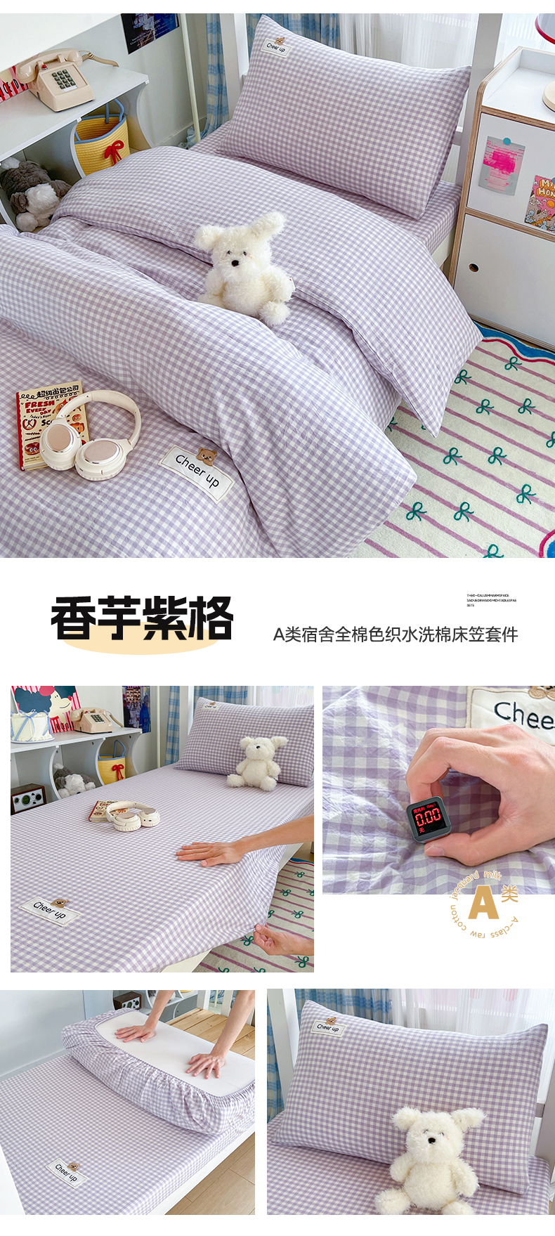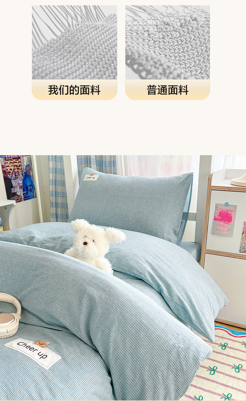 • 91家纺网 家纺一手货源 找家纺 佳笠家居 2025新款kimi熊系列A类宿舍全棉纯棉色织水洗棉床笠单床笠床笠单件 丈兰小条