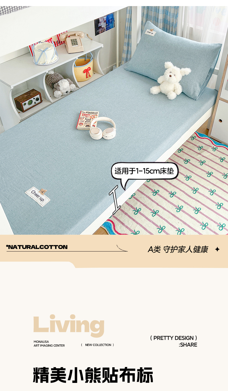 佳笠家居 2025新款kimi熊系列A类宿舍全棉纯棉色织水洗棉床笠单床笠床笠单件 丈兰小条