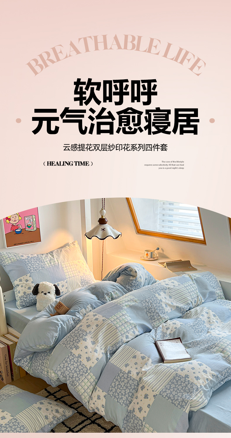 当前位置: 91家纺网 > 商品网购 > 床品套件 > 四件套 > 双层纱四件套 > 妖妖家纺2025云感双层纱学生三件套 露华浓