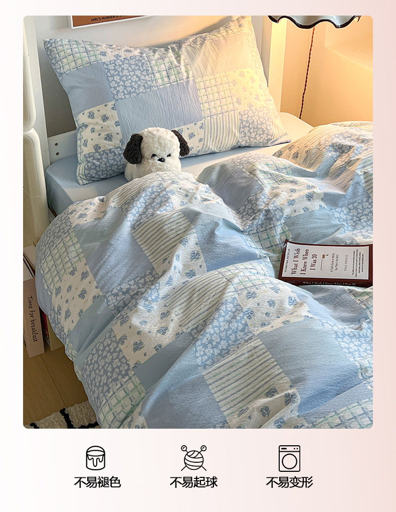 1.5床笠款四件套 被套150*200cm 床笠150*200cm 枕套48*74*2 | ¥45.00 |