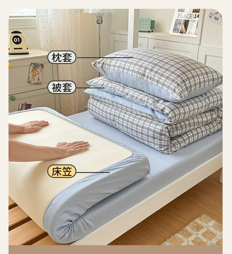 当前位置: 91家纺网 > 商品网购 > 床品套件 > 三件套 > ab家纺 2025新款40支A类水洗棉学生三件套 芷安蓝