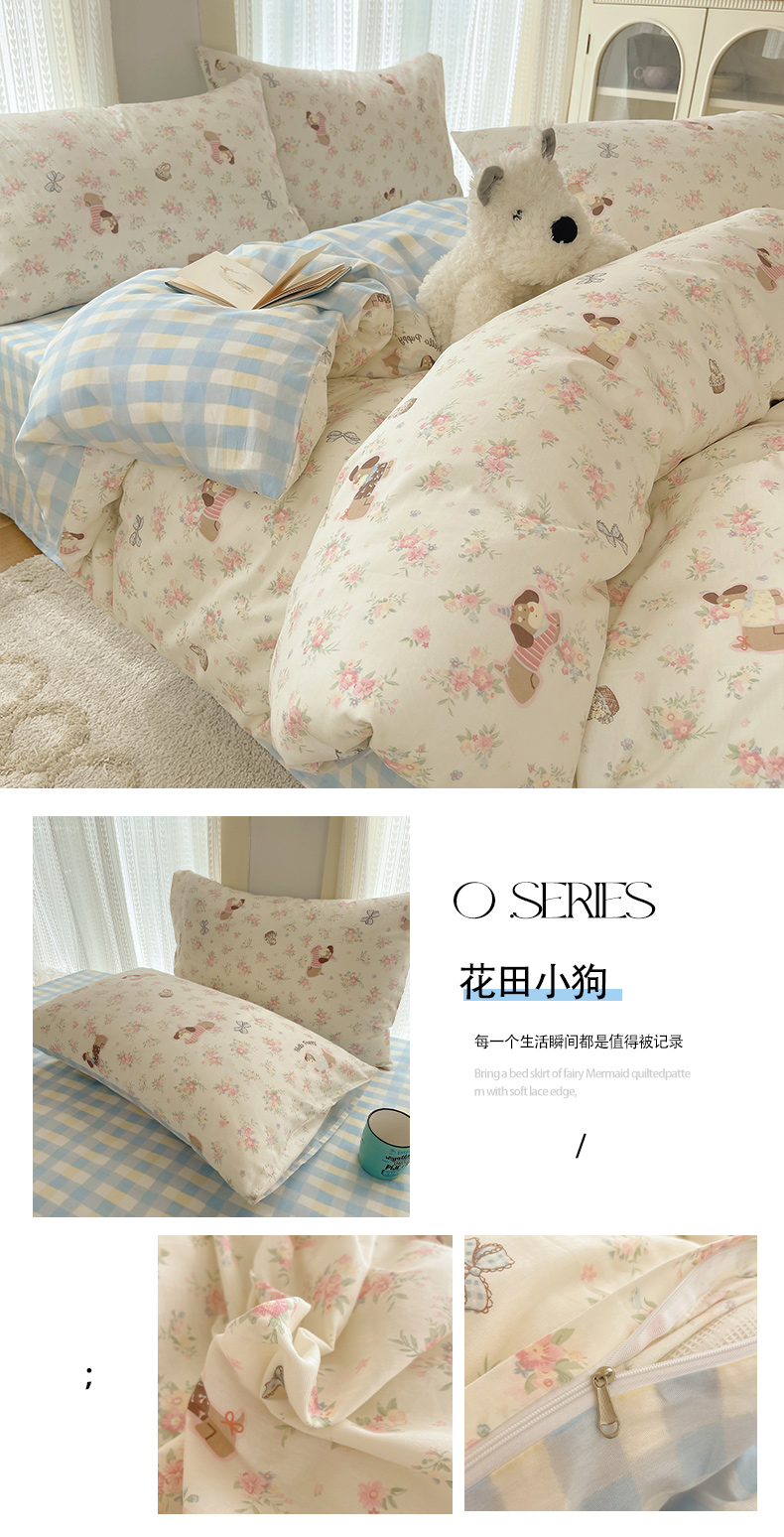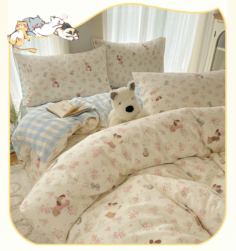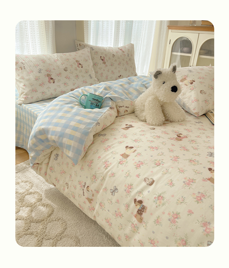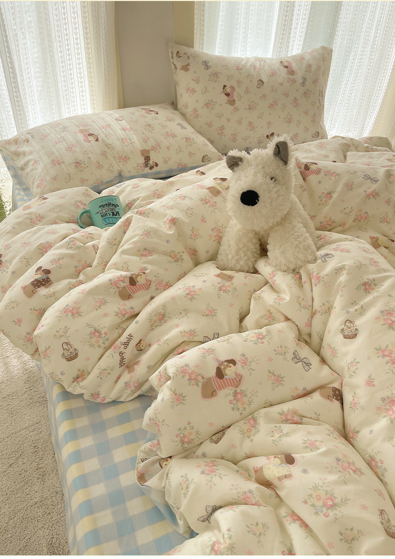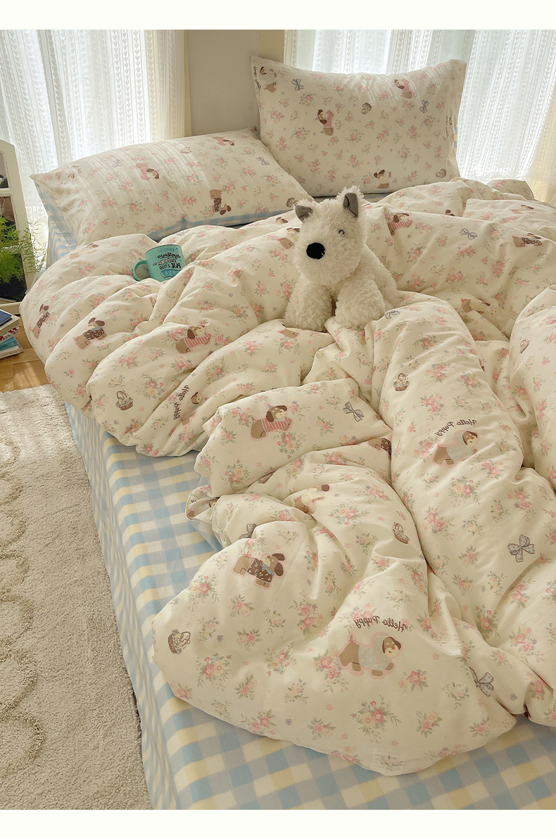 当前位置: 91家纺网 > 商品网购 > 床品套件 > 四件套 > 全棉普通四件套 > 瑞莱 2025新款开学季全棉纯棉萌趣印花四件套 花田小狗
