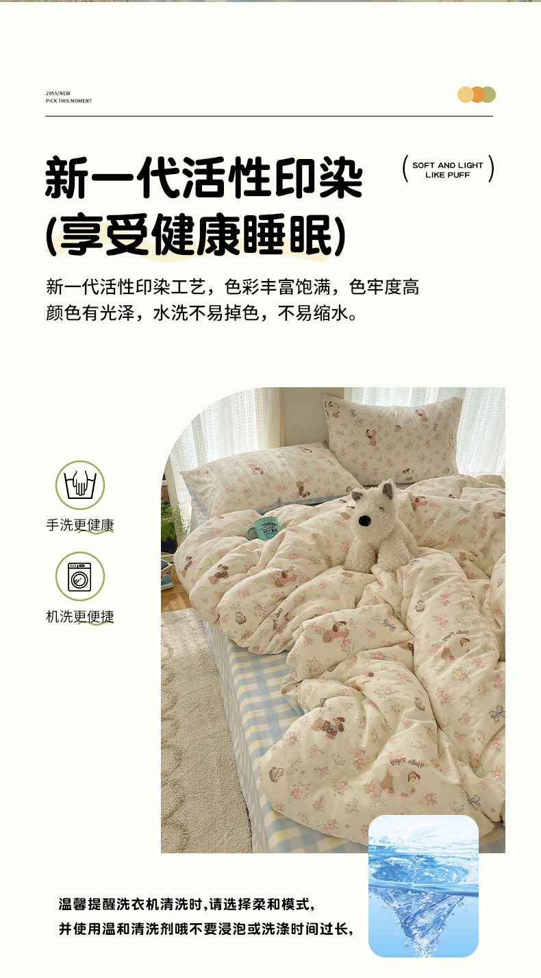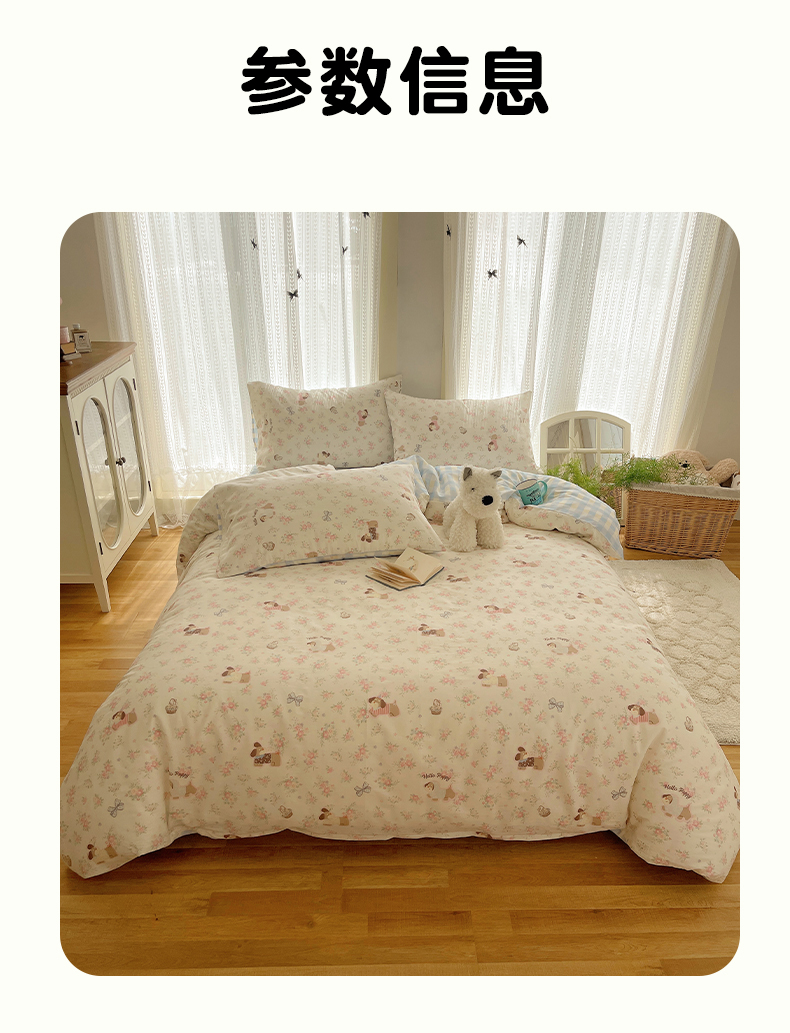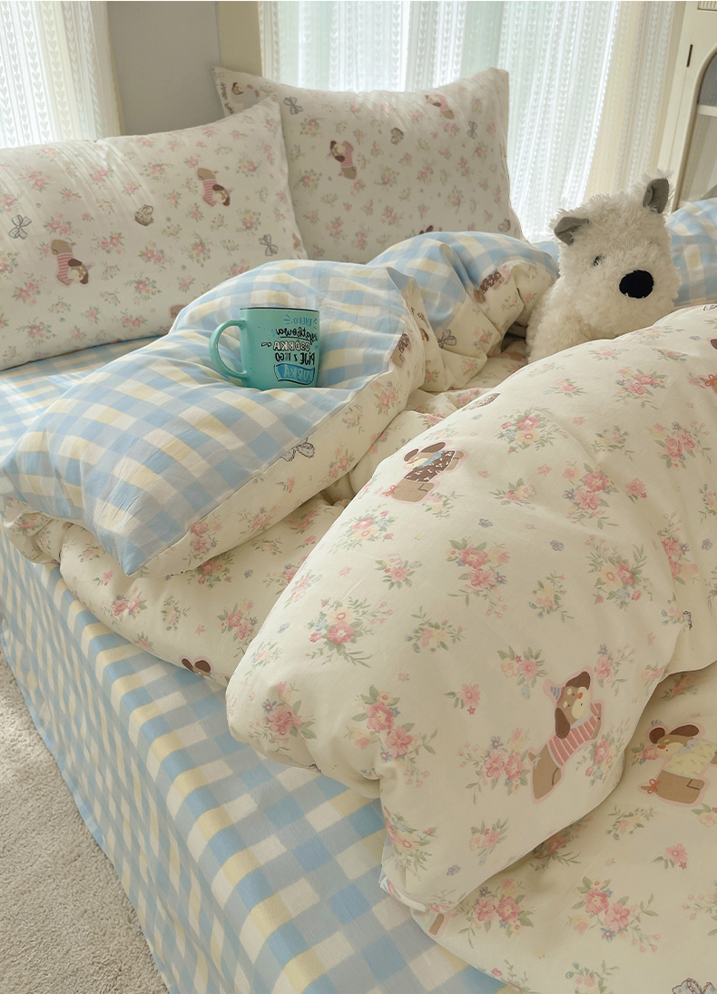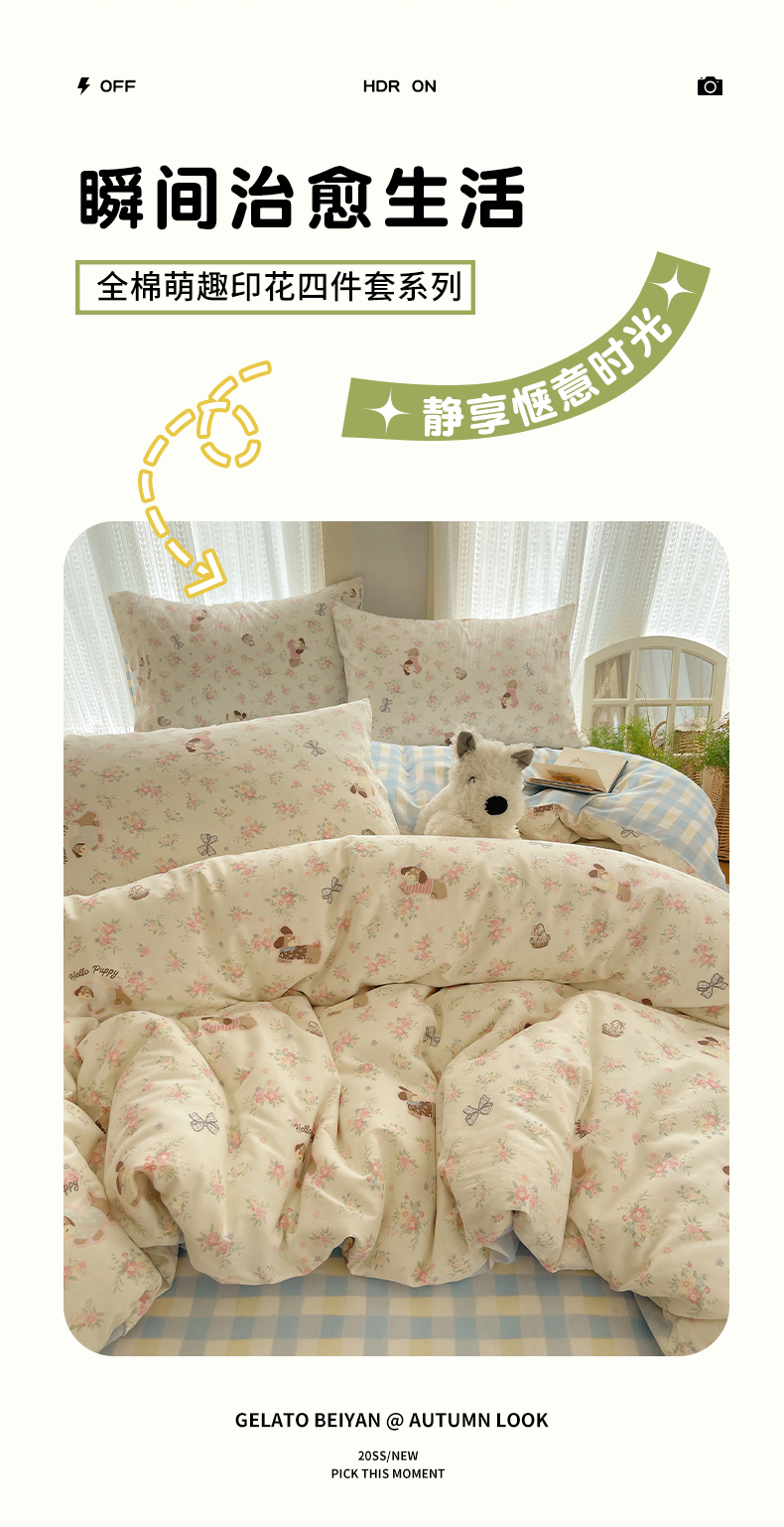 当前位置: 91家纺网 > 商品网购 > 床品套件 > 四件套 > 全棉普通四件套 > 瑞莱 2025新款开学季全棉纯棉萌趣印花四件套 花田小狗