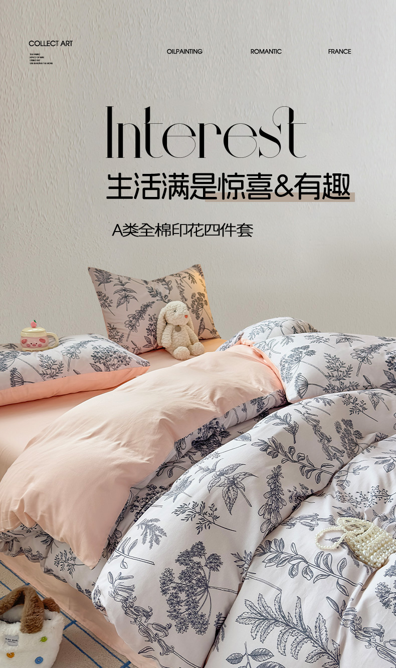 当前位置: 91家纺网 > 商品网购 > 床品套件 > 四件套 > 全棉普通四件套 > 恒爱家纺2025新款A类全棉印花四件套 静怡
