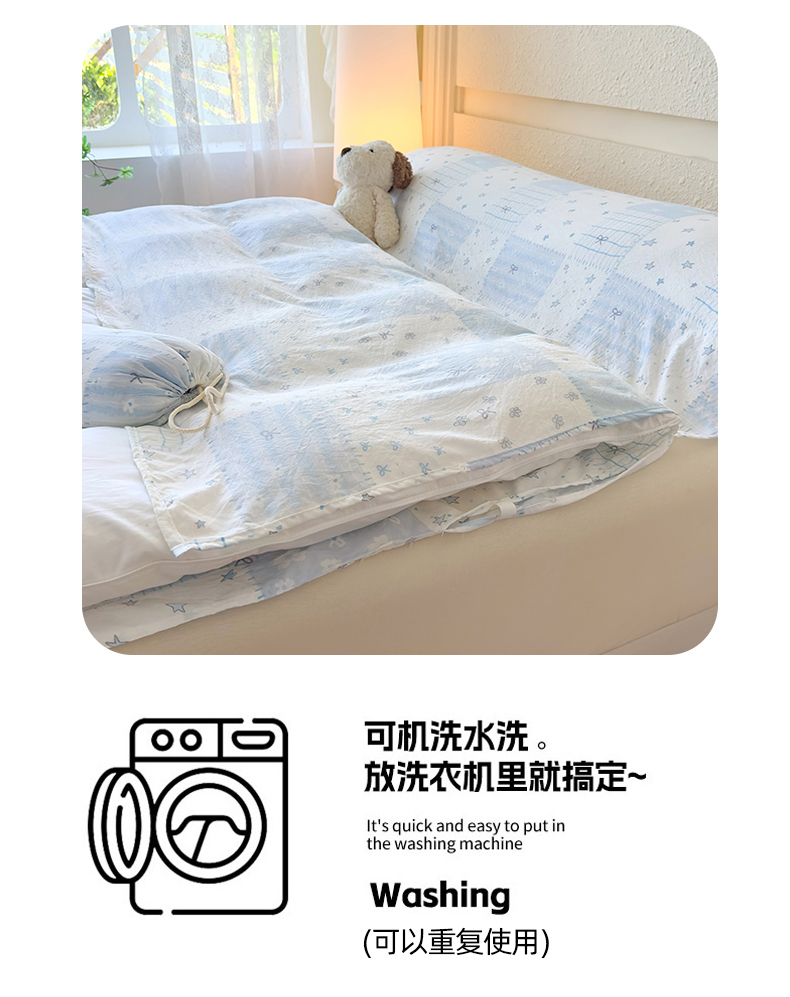 (总)老K (原美阁) 2024新款高克重印花水洗棉四件套超柔软云朵棉床上宿舍三件套单被套,旦旦兔,粉格蝴蝶结,风与爱,复古小熊,可可庄园,聆听雨音,梦幻蝴蝶,晚风,圆圆兔,紫色花园