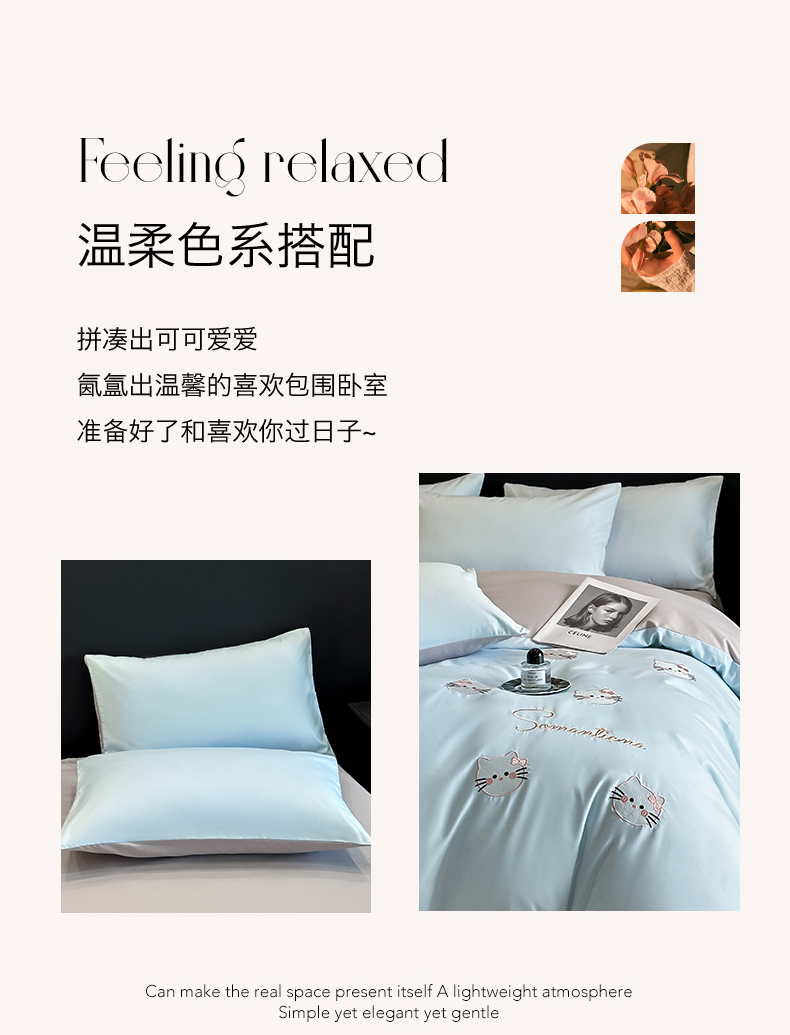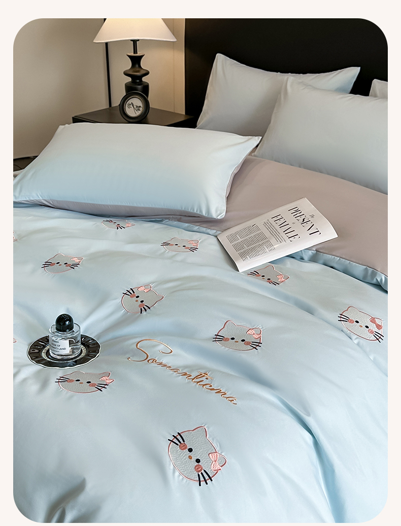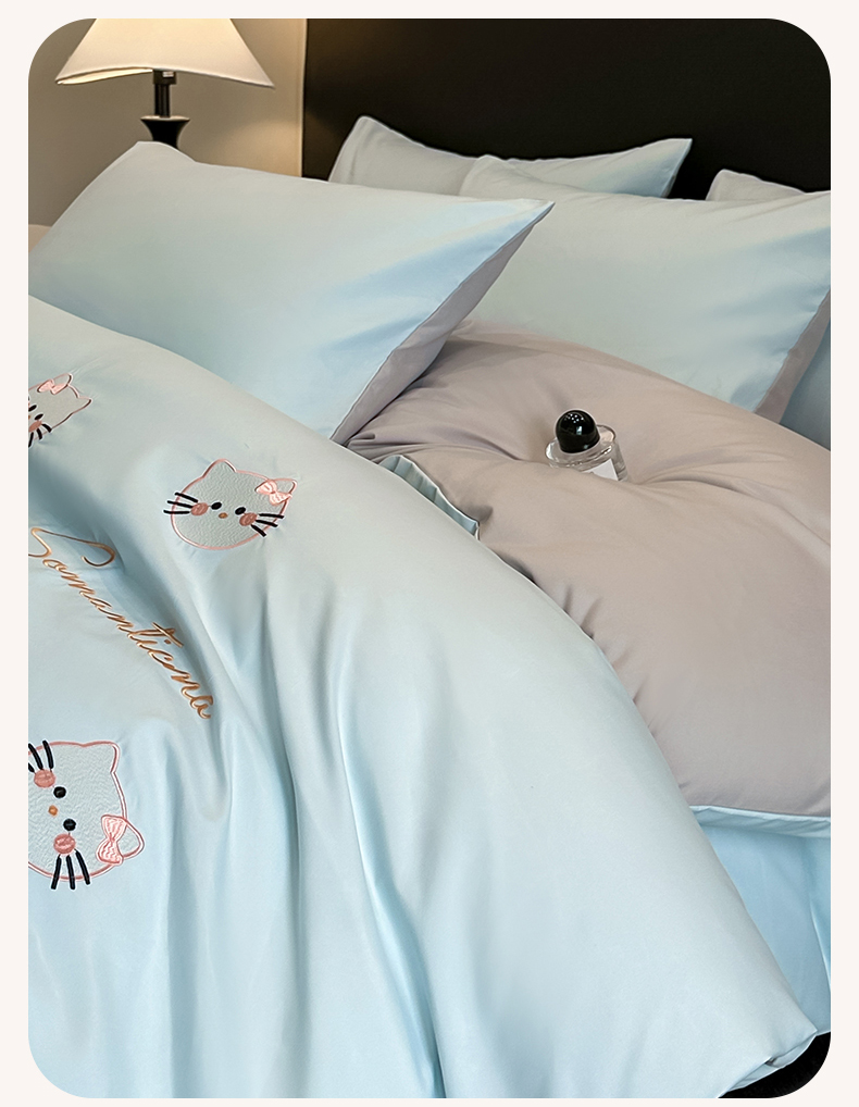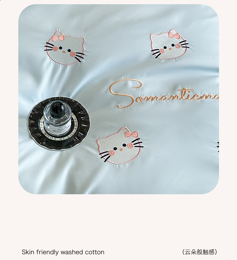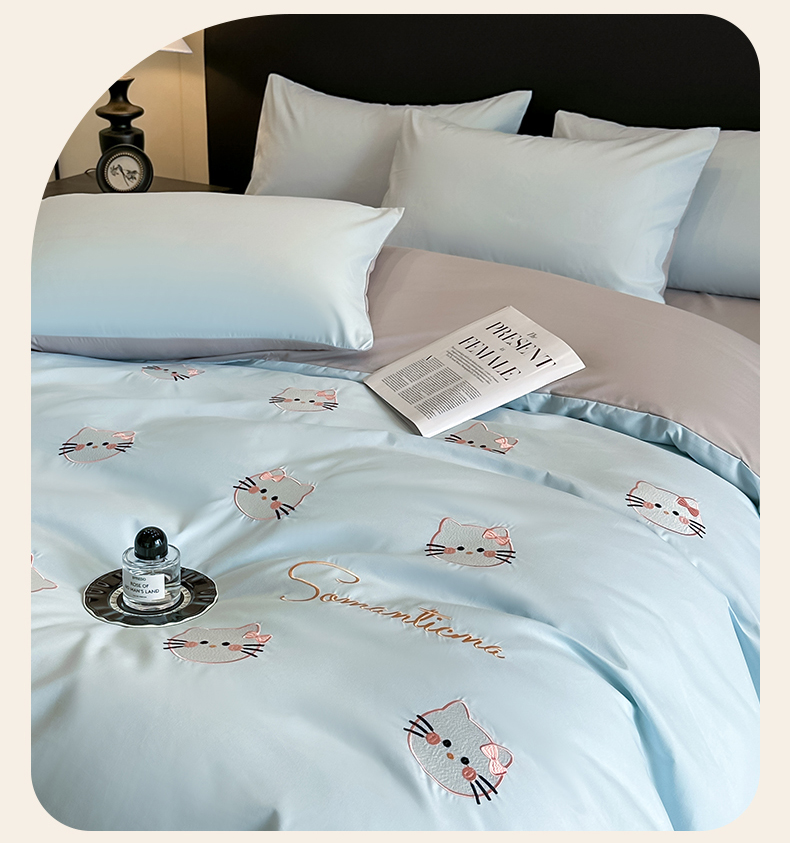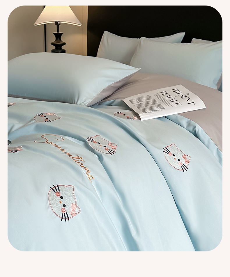 当前位置: 91家纺网 > 商品网购 > 床品套件 > 四件套 > 水洗棉四件套 > 笙意家纺 2025新款亲肤水洗棉刺绣满绣四件套 可爱猫-天蓝+山灰