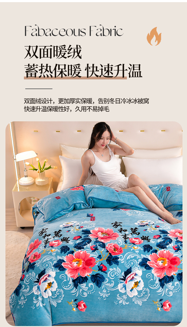 缘莉娜家纺 2025高克重8斤牛奶绒四件套金貂绒法莱绒加厚保暖直播电商爆款 如花似锦,如花似锦