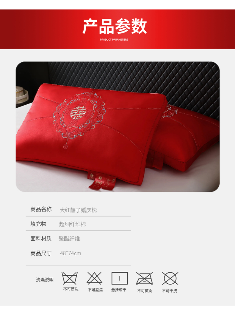当前位置: 91家纺网 > 商品网购 > 枕头/枕芯/保健枕/颈椎枕 > 普通枕芯 > 晚儿 2025新款婚庆喜字大红枕头枕芯 喜字大红枕 48x74cm高枕/只