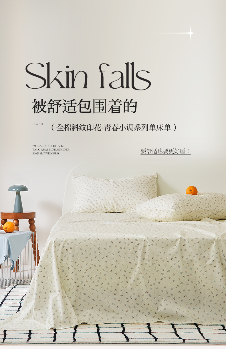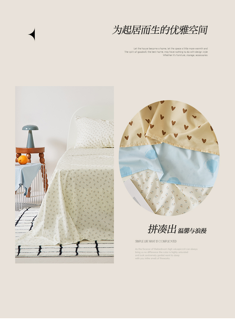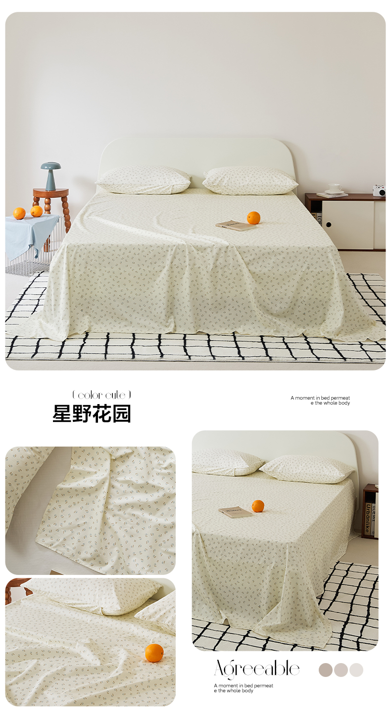 商品名称:EH家居 2025新款全棉斜纹印花-青春小调系列单床单 星野花园