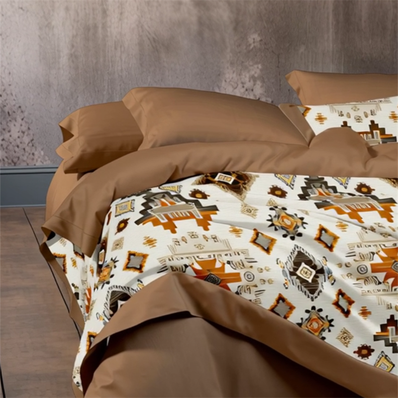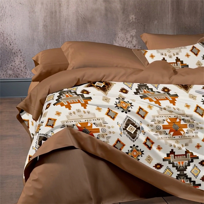 纯色雨家纺 2025新款全棉斜纹跨境日韩欧美纯棉四件套数码印花南通家纺面料尺寸花型可定制 繁华静逸,繁华静逸